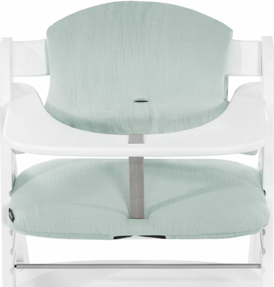 Snadné upevnění k jídelní židličce - Jednoduché, rychlé a praktické: Polstrování na židlička Select lze snadno připevnit k vysoké židličce. Žerzejová verze se připevňuje pomocí háčku a poutka; mušelínová verze pomocí patentek. A pokud je potřebujete vyčistit – stačí je hodit do pračky.