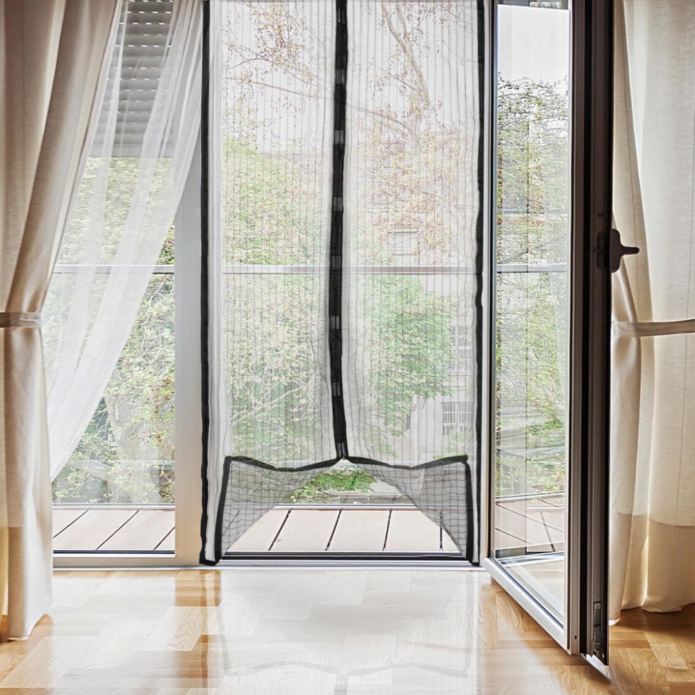 Praktická síť do dveří zajistí proudění čerstvého vzduchu, ale zabrání otravnému hmyzu vstoupit do vašeho domova. Ideální pro domy na pláži, na venkově, se zahradou atd. Lze jej snadno instalovat na terasové dveře, posuvné dveře, přední dveře, zadní dveře, balkonové dveře, stany, okna atd. Dveřní síť proti hmyzu je yrobena z lehké a propletené síťoviny. S upevňovacími magnety. Snadná a rychlá instalace díky lepicím suchým zipem (součástí balení) nebo kolíkům pro lepší držení (součástí balení). Nastavitelné a přizpůsobitelné různým výškám, šířkám a typům dveří nebo oken. Rozměry: šířka x výška každé strany - cca 50 x 210 cm Ochranná síť do dveří za skvělou cenu.