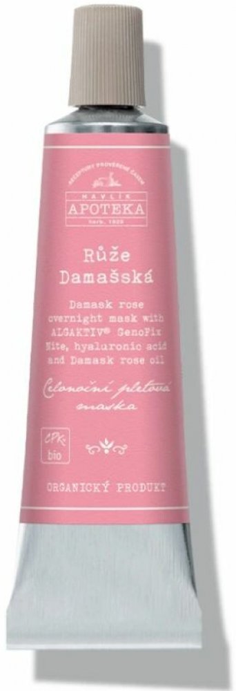 Po náročném dni pleť častokrát čeká i náročná noc. Proto, aby nebyla unavená, jí musíme občas pomoc. Stačí, když ji dopřejeme trochu té péče i přes noc, kdy ji čeká nejvíce práce. Díky této jedinečné noční masce s obsahem damašské růže bude pleť krásně vypnutá a zregenerovaná. Nemůžeme Vám zaručit kvalitní spánek, za to můžeme pomoci Vaší pleti, aby se ona vyspala hezky do růžova.