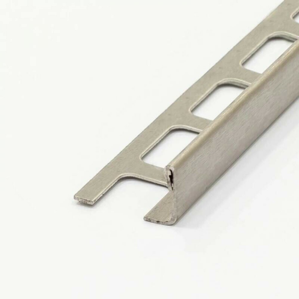 Kartáčovaná nerezová ukončovací lišta ve tvaru "L". Délka 250 mm, výška 10 mm.
