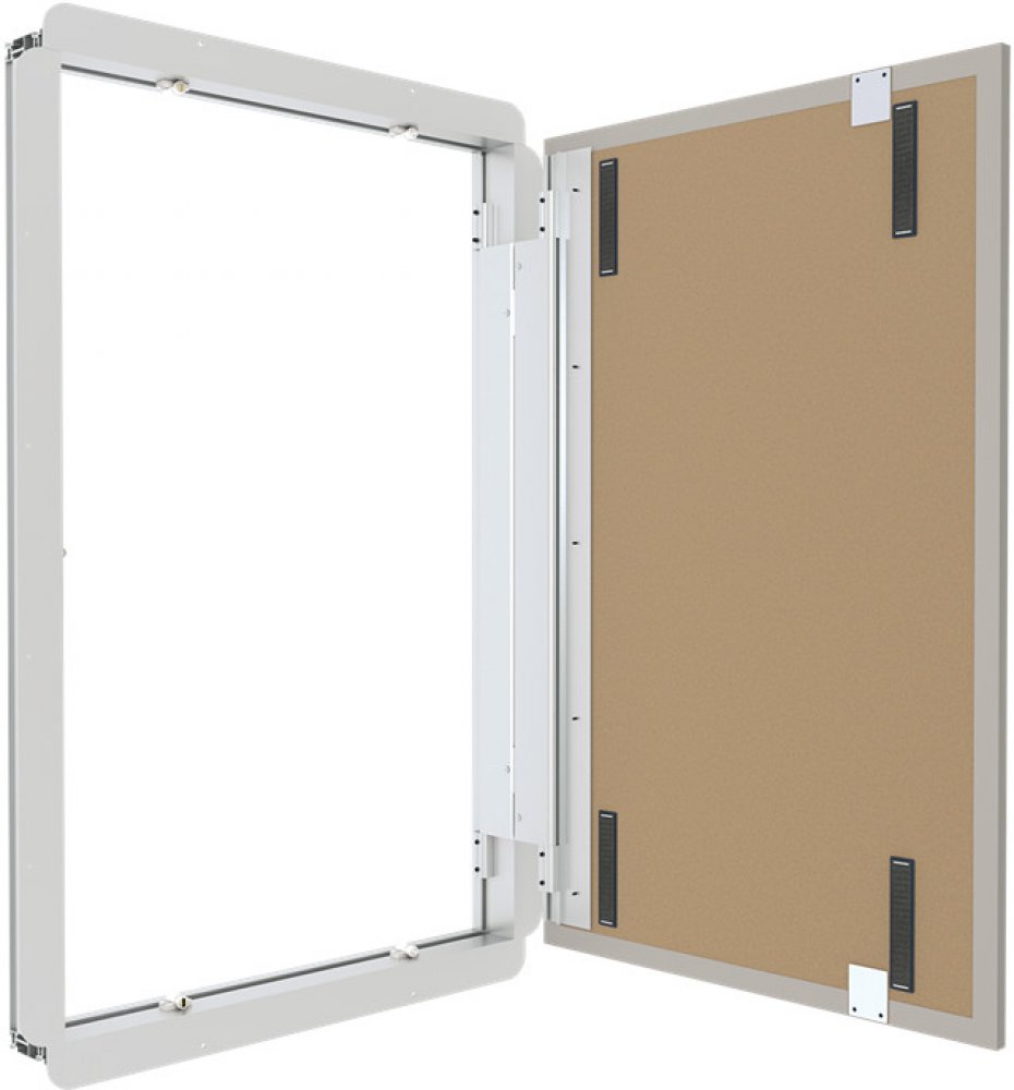 (hlavní materiálové složení) pevný rám z hliníkov z hliníkové slitiny křídlo dvířek ze sádrokartonové desky