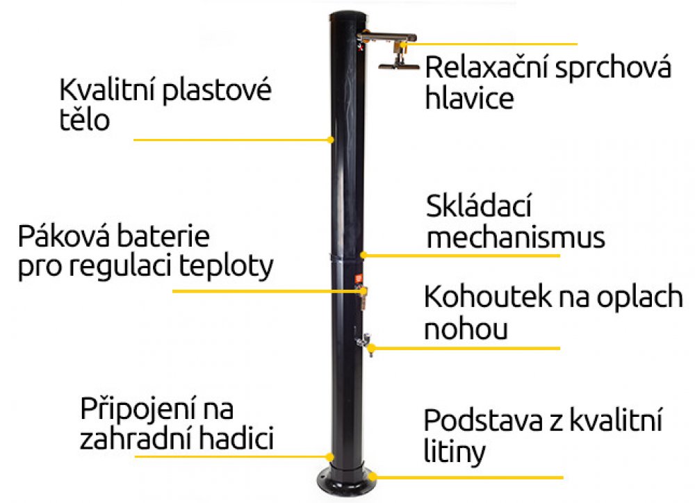 Pokud se nechcete vzdát po koupání v bazénu teplé sprchy, pak je solární sprcha pro Vás to pravé.