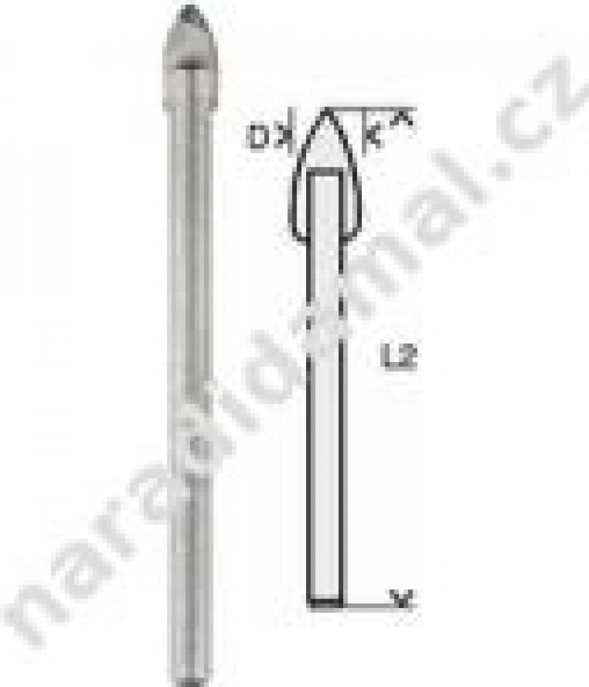 Opískovaný vrták s diamantem broušeným břitem z tvrdokovu s kuželovým výbrusem pro přesné navrtávání; destička z tvrdokovu pájená při vysoké teplotě