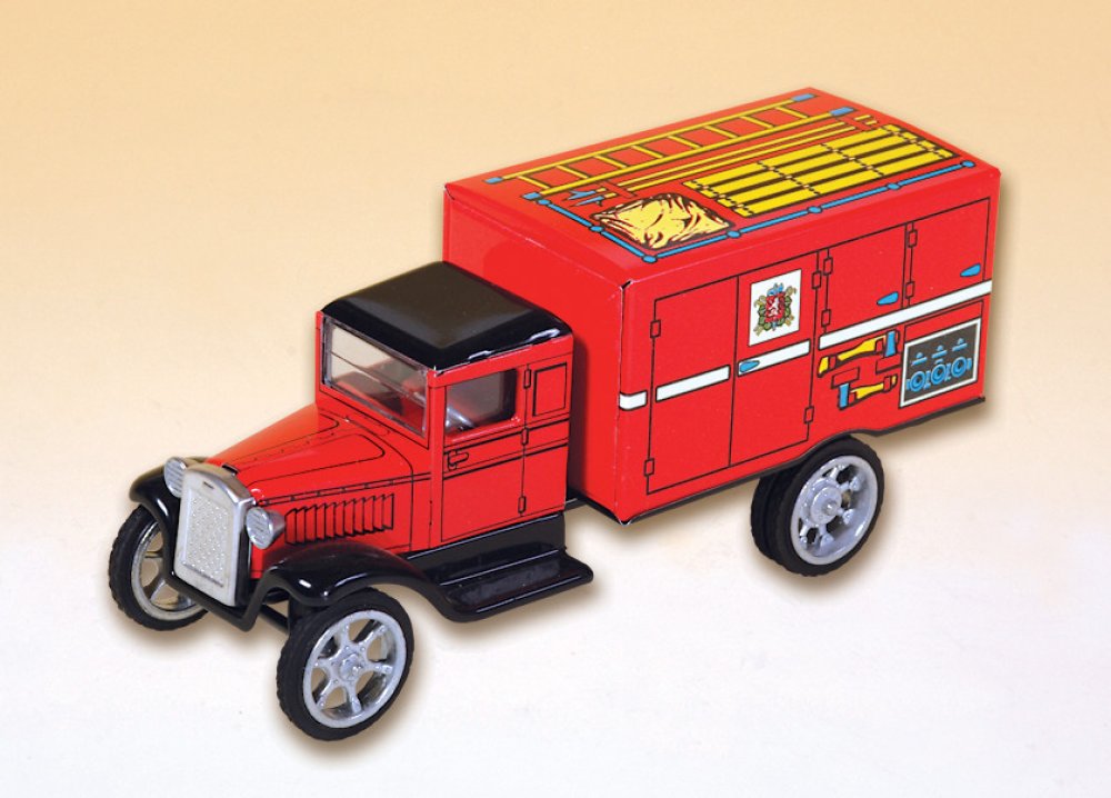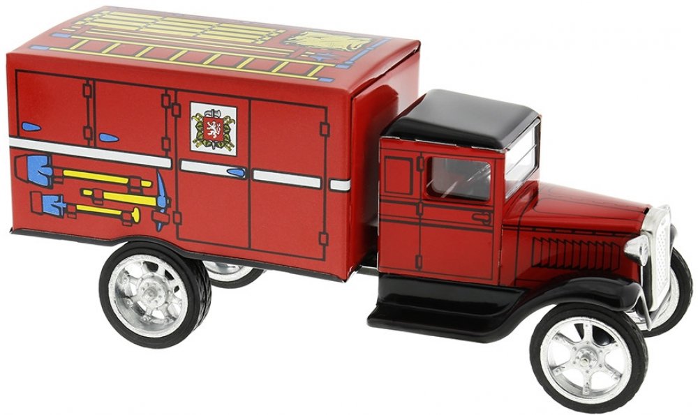 Plechový model Hawkeye hasič - skříň. Délka autíčka: 18 cm.