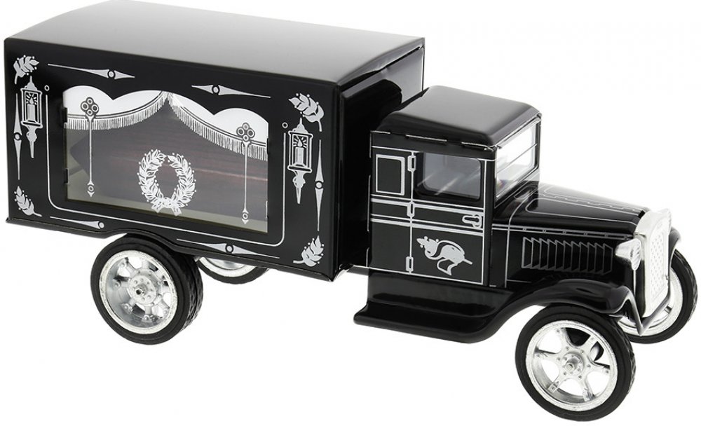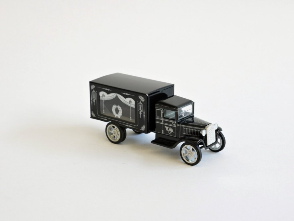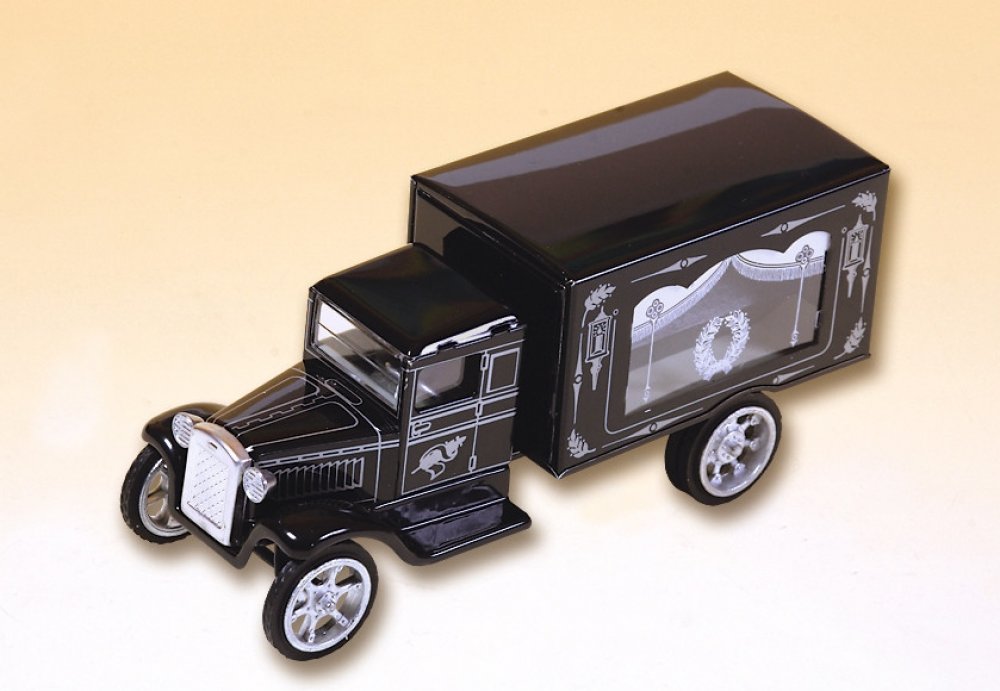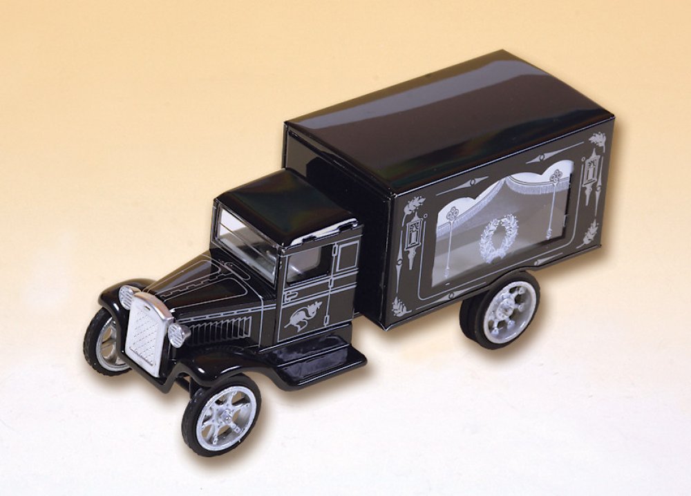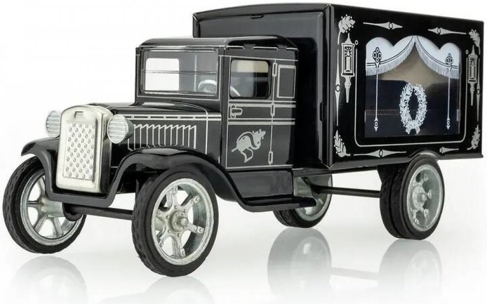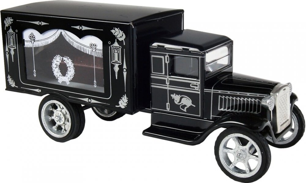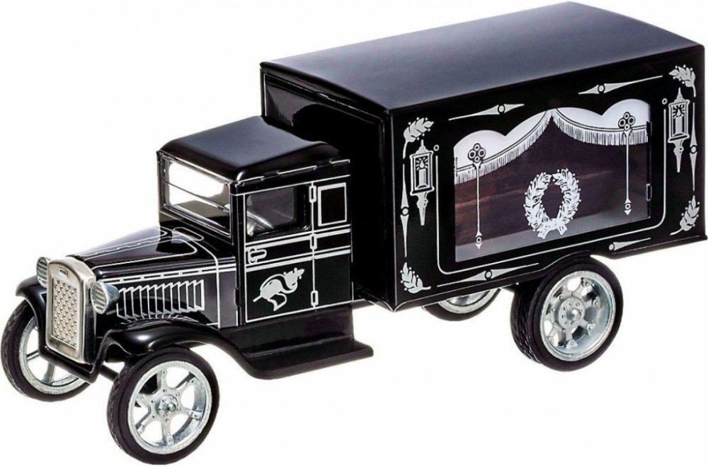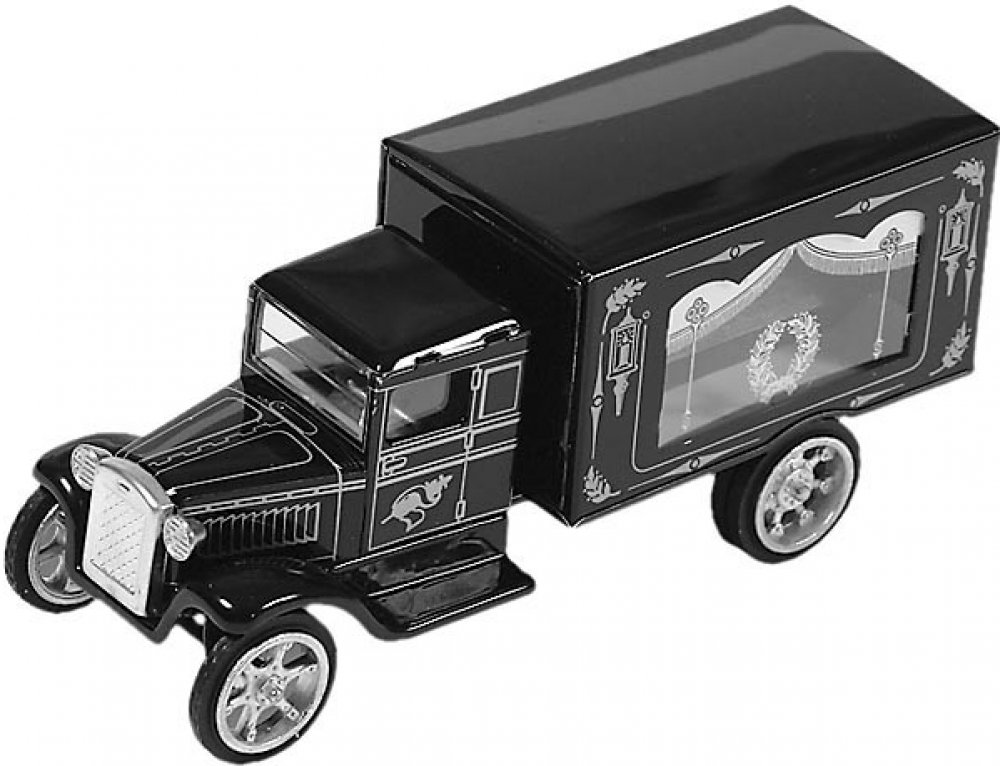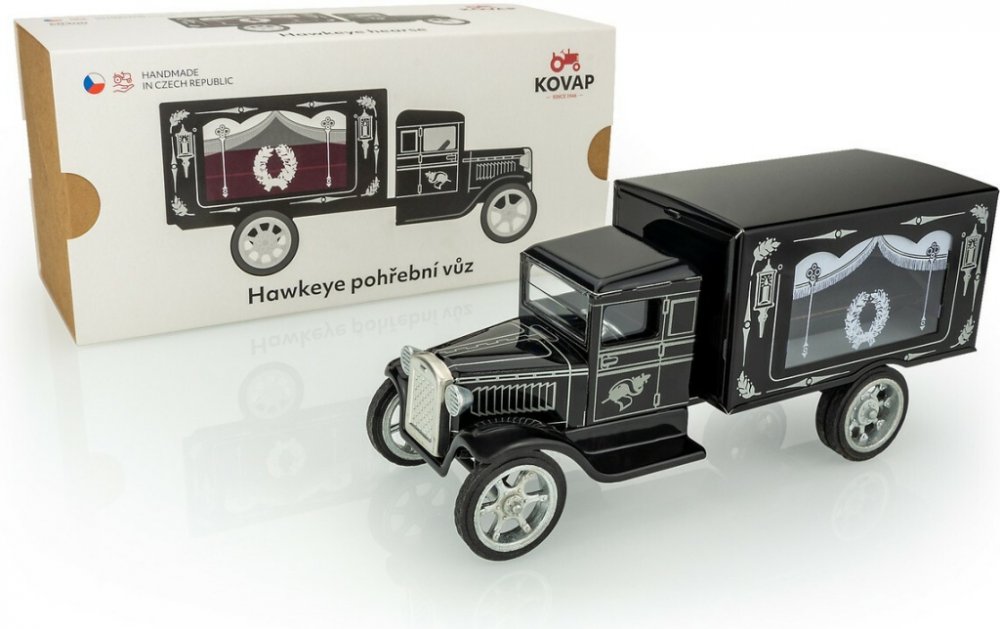 Oblíbený Hawkeye v provedení pohřební vůz. Pro někoho možná kontroverzní, ale i toto téma k životu patří. Uvnitř nechybí rakev. Autíčko navrhl Michal Možný při svém dlouholetém působení v Kovapu. Nesmí chybět u žádného sběratele našich hraček, pohřebním ústavu a u všech se specifickým smyslem pro humor! Vyrobeno podle modlu z roku 1924 z potištěného plechu. Měřítko 1:32. POZOR! Automobil není vyba...