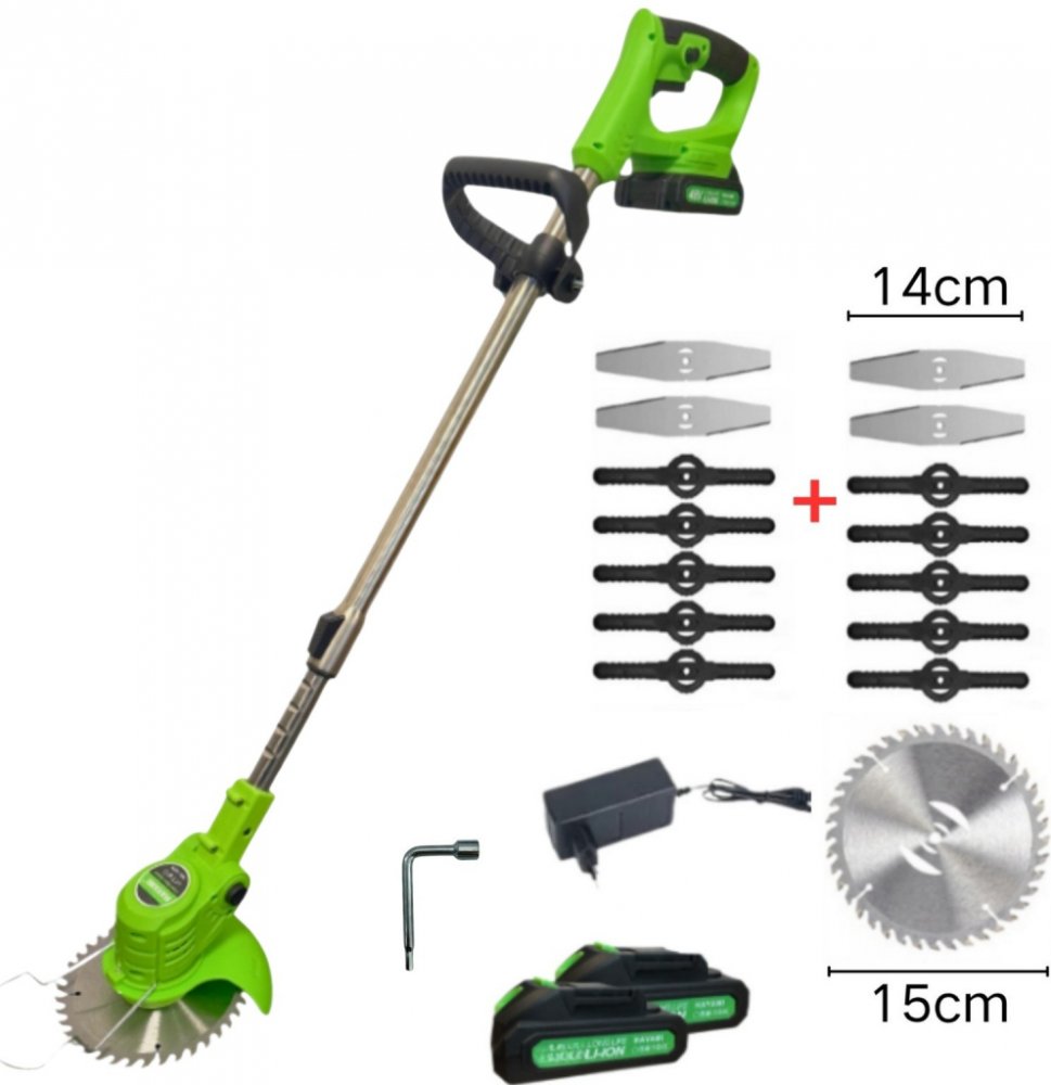 Praktický pomocník pro všechny zahradníky na posečení trávy i na špatně dostupných místech a díky řeznému kotouči lze zaříznout i drobnější větve stromů či keřů.