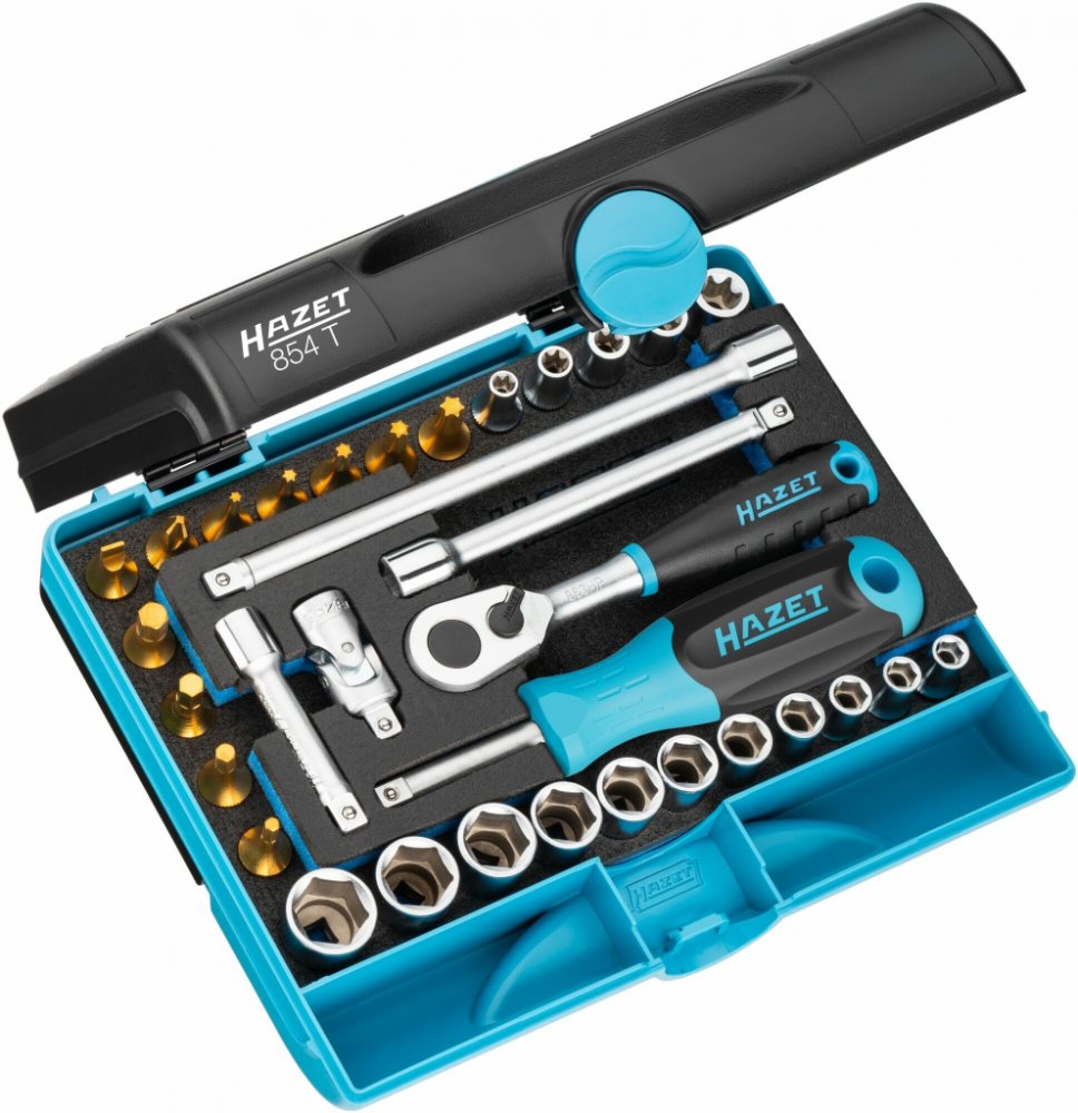 Kvalitní sada nástrčných klíčů. Něměcký výrobce HAZET. 33 kusů v plastovém kufříku s pěnovou vložkou. Sada obsahuje nástrčné klíče a bitové nástavce. Kompletní obsah viz Podrobnější informace.