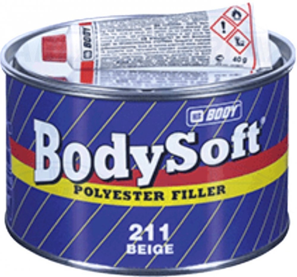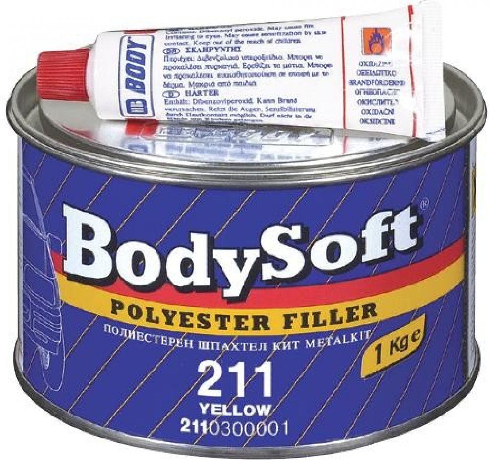 Body Soft 211 Polyesterový tmel je dvousložkový polyesterový stěrkový tmel vhodný na kovové, ale i dřevěné povrchy.Body Soft 211 Polyesterový tmel má jemnou konzistenci s dobrými plnicími vlastnostmi. Používá se k tmelení středních nerovností. Po zaschnutí se lehce brousí brusným papírem hrubosti P80 – 120 a vytváří hladký povrch. Tuží se v poměru 100 : 3 (2-3% tužidla)