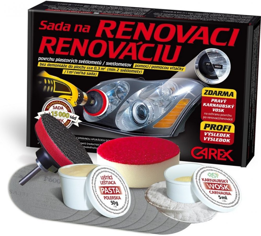 Leštění se provádí mechanicky, bez chemického znehodnocení povrchu světlometu. Jelikož je leštící pasta CAREX na vodní bázi, není tedy chemicky agresívní, jako pasty konkurenční, určené vesměs pro leštění ruční.