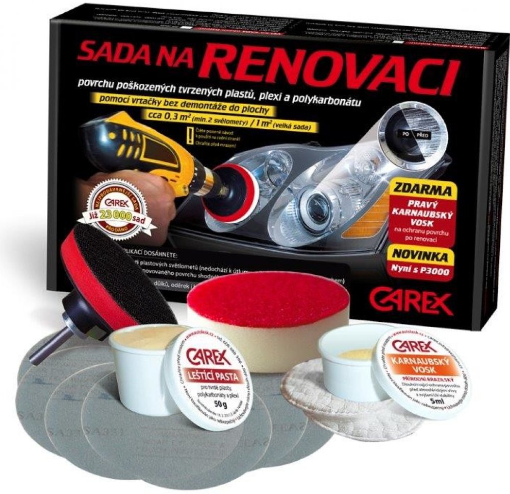 UPOZORNĚNÍ: produkt není určen pro renovaci skleněných světlometů!