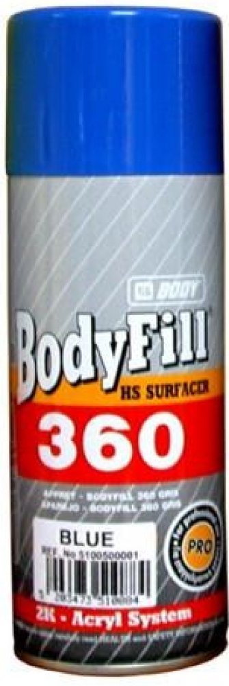 HB BodyFill 360 AE modrý plnič se základem 400 ml Akrylátový plnič s antikorozními vlastnostmi. Je určen jako antikorozní plnící základ na polyesterové tmely, kovové, některé plastové, ale i dřevěné povrchy. Zaplňuje dobře malé nerovnosti, rýhy a probroušené hrany