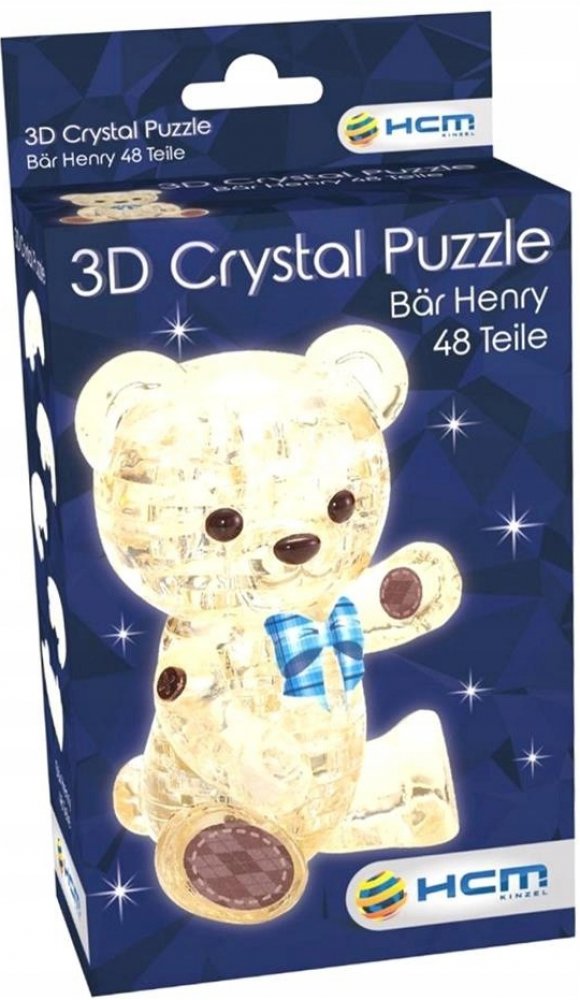 Puzzle a jeho skládání podporuje logické myšlení, a navíc pomáhá zkrátit volné chvíle. I přes různé modifikace se princip nemění, a tak může tato aktivita bavit po generace. V balení se nachází 48 dílků, k jejichž složení stačí jen malá dávka trpělivosti. Patří mezi 3D puzzle, které se staví do prostoru. Výrobním materiálem je barevný plast, který velice napodobuje krystalické sklo. K výrobě 3D puzzle slouží plast. Hlavní vlastnosti produktu 3D Crystal puzzle Medvídek Henry 48 dílků Puzzle rozvíjí jemnou motoriku, koncentraci i předvídavost 3D puzzle HCM KINZEL je svým motivem vhodné pro děti od 14 let Puzzle obsahuje celkem 48 dílků Jedná se o 3D puzzle Dílky svým vzhledem připomínají krystalické sklo Jeho výrobním materiálem je plast