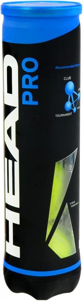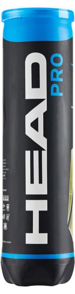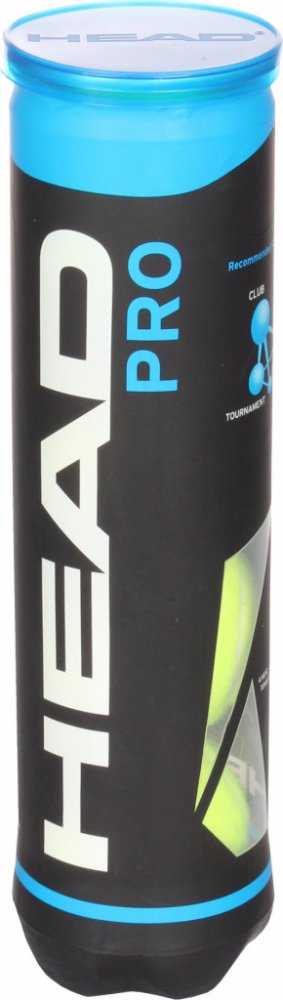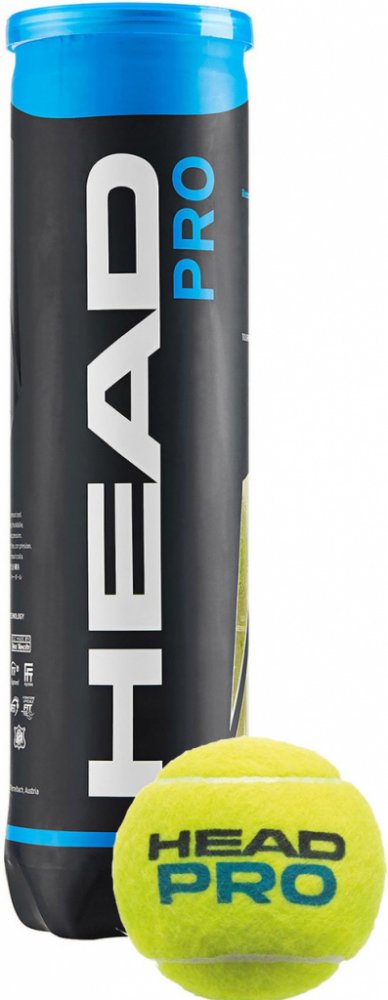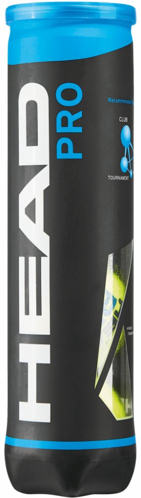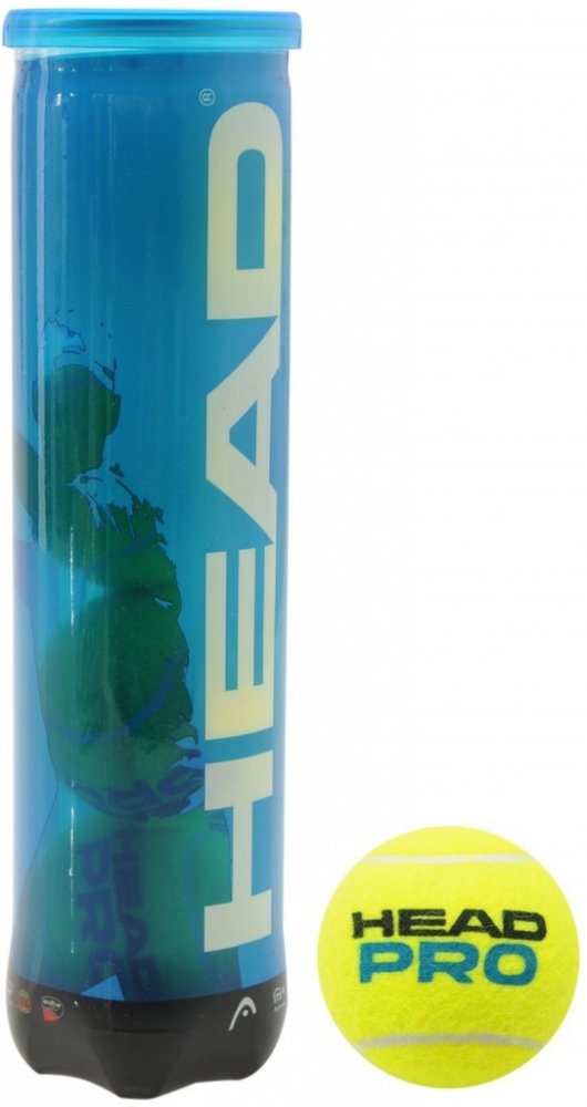 Univerzální tenisové míčky na tvrdý povrch nebo antuku. Tuba 4 míčků. Míčky Head Pro jsou poddajné a pohodlně se s nimi hraje. Ideální na živější, kontrolované odpaly. Tuba 4 míčků. |Míčky jsou vhodné na tvrdý povrch a na antuku. Díky nižší tvrdosti se snadno používá a poskytuje dobrý pocit kontroly nad odpalem. |Míček má jádro z přírodního kaučuku. To zlepšuje kvalitu odskoku. |57,7 g. Norma ITF: 56 až 59,4 g. |6,54 cm. Norma ITF: 6,54 až 6,86 cm. |144 cm (míček puštěný z výšky 2,54 m). Norma ITF: 135 až 147 cm. |Pohodlný míček s nižší viskozitou pro velmi pohodlnou hru. Index viskozity míčku se počítá měřením deformace míčku.