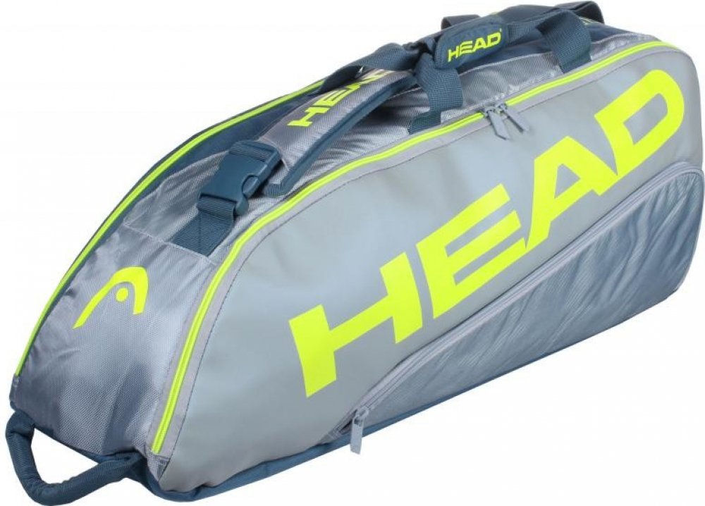 S moderní taškou na rakety Tour Team Extreme 6R Combi vyniknete už jen tím, že s ní vstoupíte na kurt. Vedle standardně kvalitního Head zpracování se taška vyznačuje originální barevnou kombinací ze šedo-stříbrné a modro-zelené barvy doplněné neonově žlutými nápisy. Taška Tour Team Extreme 6R Combi perfektně zapadá do kolekce raket řady Head Extreme. Tento model má sice menší prostorovou kapacitu než její větší alternativy jako je Tour Team Extreme 9R, ale i tak dokáže pojmout až 6 raket bez obalu ve dvou prostorných přihrádkách. Jedna z hlavních přihrádek je vybavena osvědčenou technologií Climate Control Technology+ (CCT+) pro ochranu raket před extrémními výkyvy teplot. Vnitřní síťovaná kapsička a vnější kapsa na zip nabízí pak další prostor pro drobnosti. Pohodlný transport tašky zajišťuje odnímatelný popruh s objemným polstrováním. K dispozici jsou i dvě madla pro rychlé přemístění. Stylovou přepravu věcí Vám nabízí moderní sportovní taška Tour Team Extreme 6R Combi.Tour Team Extreme 6R Combi:- Design Head Extreme série- 2 hlavní přihrádky až pro 6 raket- 1 přihrádka s CCT+ ochranou- 1 přihrádka s integrovanou kapsou na osobní věci- 1 vnější kapsa s rychlým přístupem- Odepínací a délkově nastavitelný ramenní popruh s polstrováním- Středové dvojité madlo- Rozměry: 84.5 x 31 x 26 cm- Objem: 48 l- Hmotnost: 0,93 kg- Materiál: 70% polyester + 30% PU
