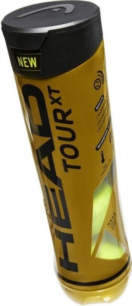 Tenisové míče Head TOUR XT 4 ks v dóze TOUR XT je zbrusu nový premiový míč firmy HEAD.Tenisové míče Head TOUR XT patří do řady vynikajících míčků pro svou životnost a schopnost dosahovat maximální rotace a kontroly. Momentálně jsou to nejlepší turnajové míče firmy Head, které používající novou technologií EncoreTM pro ještě vyšší životnost. Povrch je s plsti SmartOptikTM, která optimalizuje jejich viditelnost. TOUR XT je zbrusu nový premiový míč firmy HEAD. HEAD TOUR XT byl vyvíjen a testován za přísných podmínek po více než dva roky - v laboratoři a na kurtu s profesionálními tenisty. Výsledkem je míč, který poskytuje díky své technologii Impact Core jedinečný dotyk a snadnou ovladatelnost. Vyberte si ikonickou zlatou dózu HEAD TOUR XT, pokud jste turnajový nebo klubový hráč - nebo kdokoli jiný, kdo hledá perfektní míč, kterým zahrajete vaše nejlepší a nejpřesnější údery. Díky technologii Encore™ má tento míč delší životnost než dříve, navíc s technologií SmartOptik pro ještě lepší viditelnost, a to na všech površích. Optimální kontrola Zvýšená odolnost Doporučuje se pro horké teploty a rychlé antukové/tvrdé kurty. dóza = 4 míče