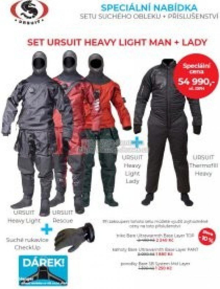 Oblek je dodáván v praktickém přepravním a skladovacím vaku. Součástí balení je středotlaká hadice, drcené mýdlo pro snazší oblékání manžet, vosk pro mazání suchého zipu, servisní sada pro rychlé lepení a pletená čepice nebo kšiltovka Ursuit.