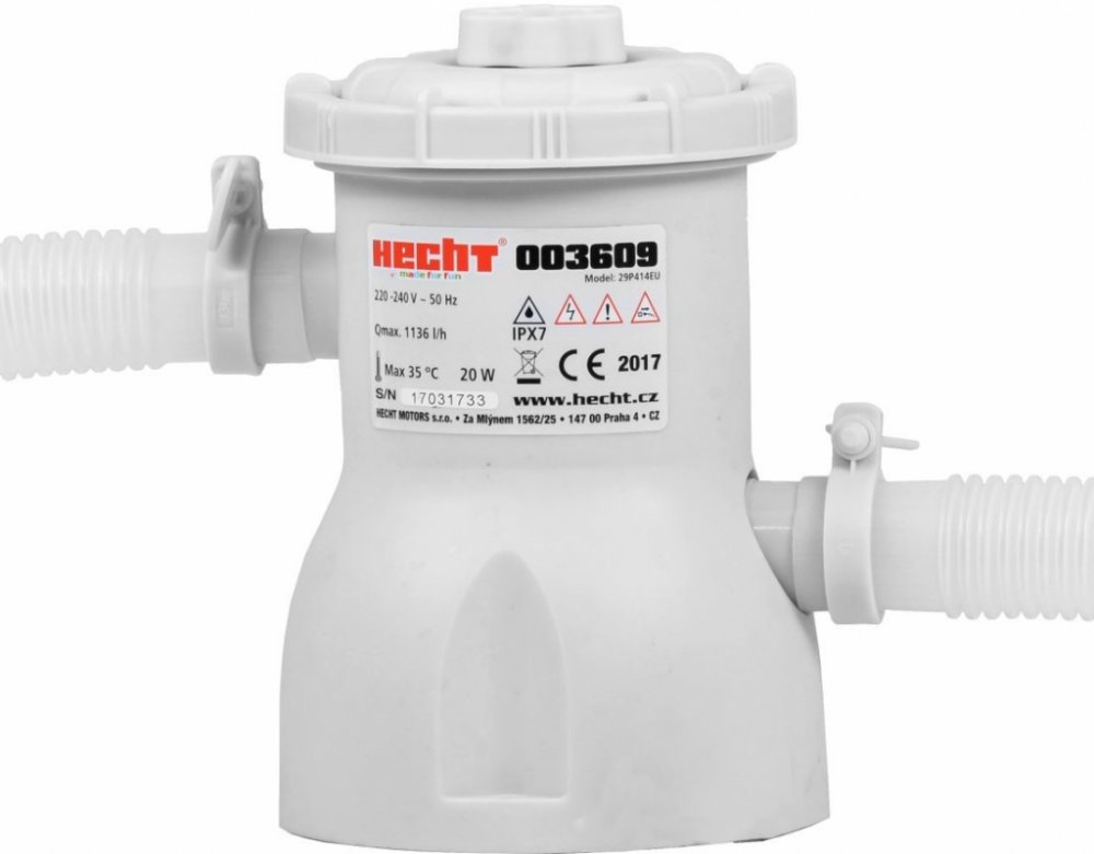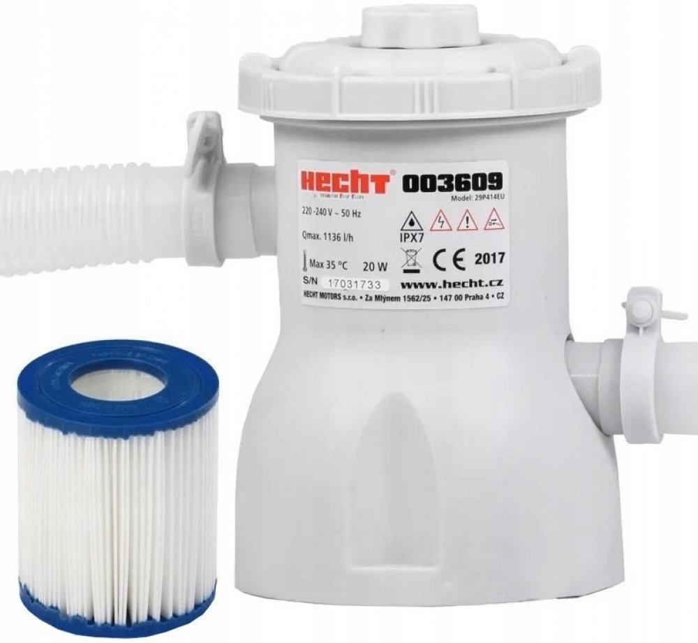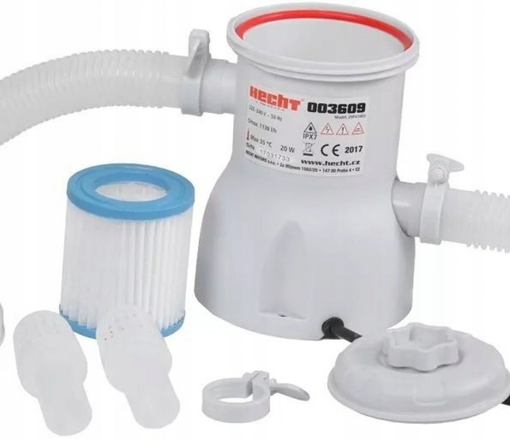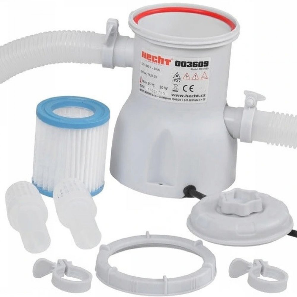 Kartušová filtrace vhodná k menším bazénům. Průtok filtrace je 1,2 m3 za hodinu. Vzhledem k tomu, že je doporučováno, aby filtrační jednotka přefiltrovala celý objem bazénu minimálně jednou za 6 až 8 hodin, je tato filtrace vhodná pro bazény s objemem do 7000 l. Ideální je tak například k bazénu HECHT 3609 BLUESEA.