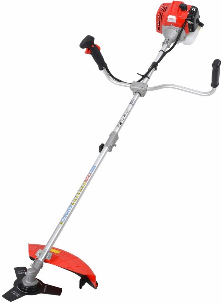 Praktický a lehký motorový křovinořez se strunovou hlavou a kovovým kotoučem. Stroj je vybaven 2taktním benzínovým motorem o výkonu 1 HP, který si spolehlivě poradí i s hustším porostem. Díky kvalitnímu úhlovému převodu je výkon bezpečně a spolehlivě přenášen na žací ústrojí. Pro snadnější startování za studena je motor vybaven primerem (podávacím čerpadlem paliva do karburátoru) a sytičem.