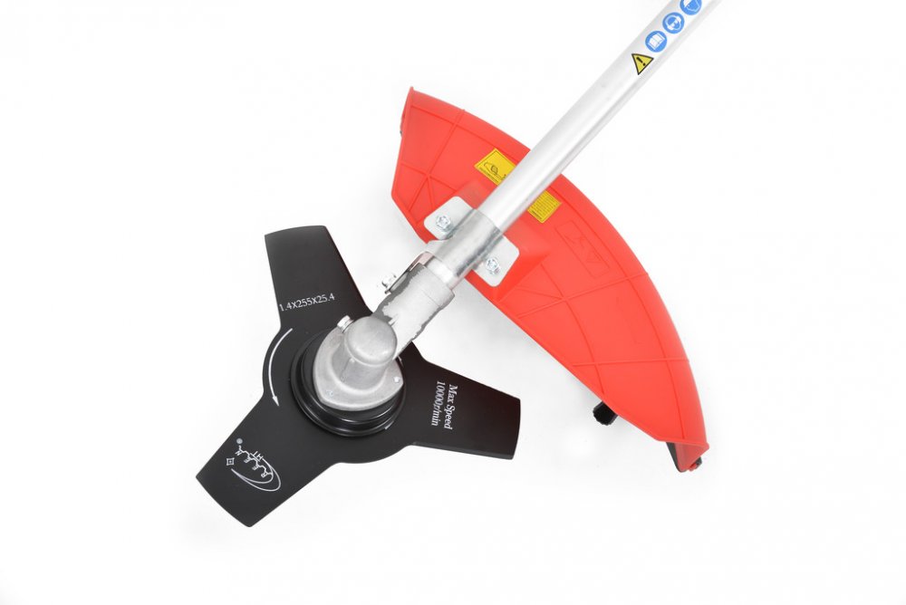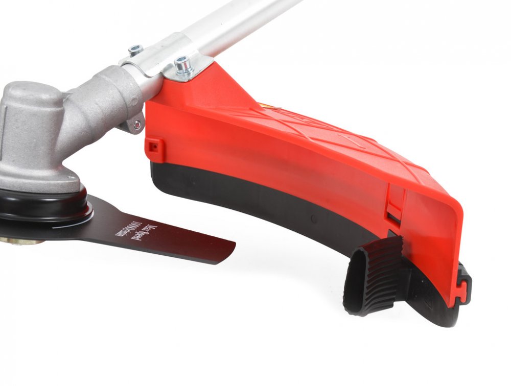 Záběr sečení je 25,5/44 cm dle použitého nástroje - stroj je vybaven kvalitním tříramenným kovovým kotoučem a dvou-strunovou poloautomatickou hlavou s odřezávačem struny – je-li struna opotřebovaná, stačí roztočenou strunovou hlavou poklepat o zem a struna se automaticky prodlouží. Odřezávač ji pak automaticky upraví na potřebnou délku. Během sečení tedy nemusíte neustále ručně strunu prodlužovat.