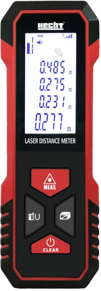 HECHT 2008 - laserový měřič vzdálenosti (dálkoměr). Dosah 40 m. Přesnost +/- 2 mm. Možnost základního i pokročilého měření s výpočty plochy, objemu a dalších funkcí.