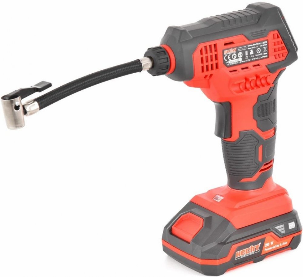 HECHT 2090 je šikovný ruční akumulátorový kompresor, se kterým snadno nahustíte pneumatiky, jízdní kola, míče nebo nafukovací hračky.