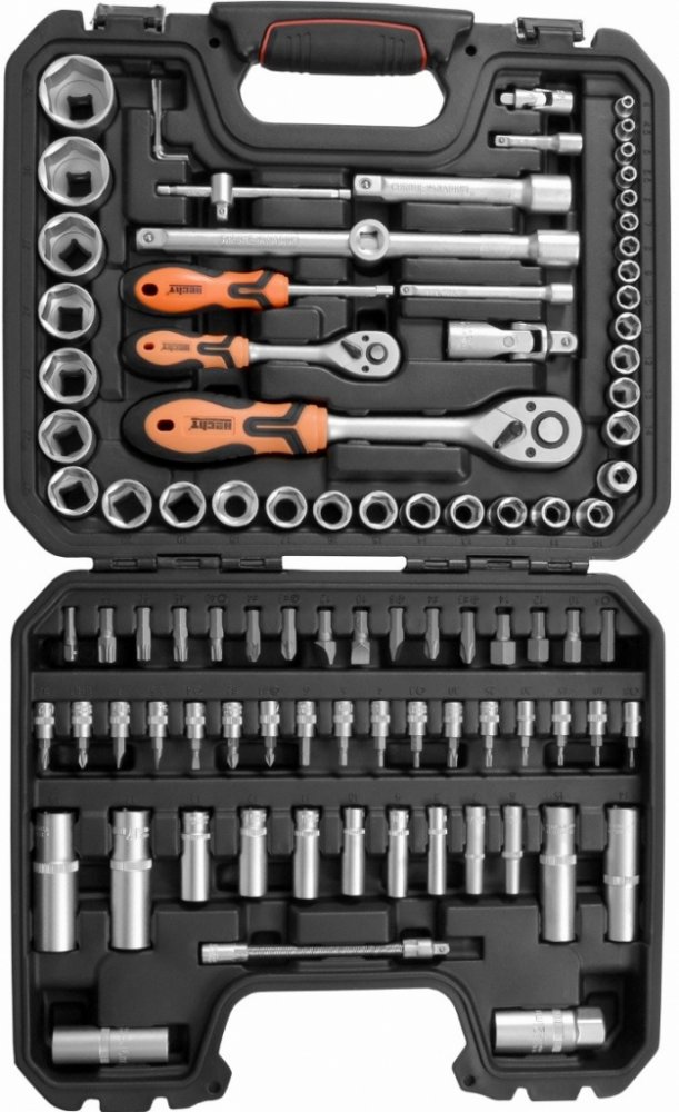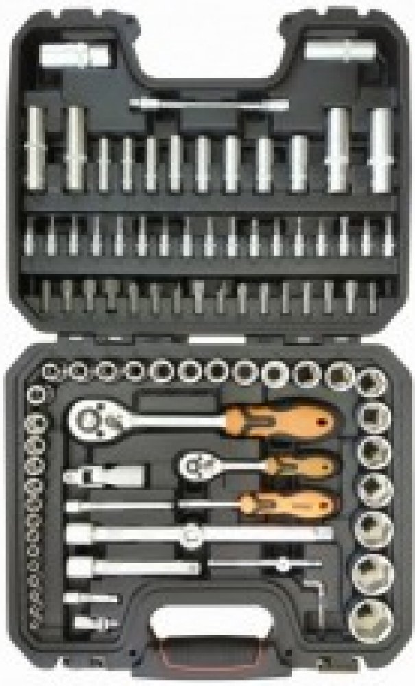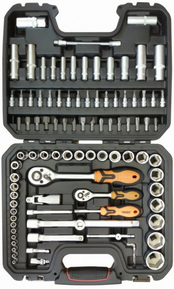 Standardní vybavení: Hlavice na zapalovací svíčky, ohebný nástavec, hlavice 4-14 mm, prodloužené hlavice, sada bitů, adaptér, spojka, malá a velká ráčna, kardanový kloub, šroubováková rukojeť, velké a malé t-vratidlo, imbusové klíč..