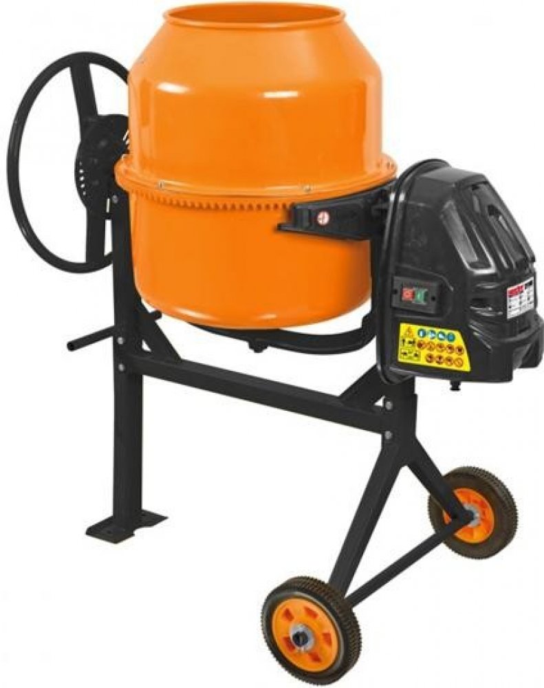 • bezkonkurenční poměr cena/výkon Stavební míchačka betonové nebo maltové směsi. Moderní výkonný motor s příkonem 550 W, je napájen z 230 V/50 Hz sítě. Míchačku je proto možné použít i v místech, kde není možné připojit výkonnější motory, případně pro pohon použít vhodnou elektrocentrálu. K přenosu síly motoru na buben slouží kvalitní litinový ozubený věnec. Objem bubnu je 120 l. Speciálně tvarované lopatky se postarají o dokonalé promísení směsi. Stabilní masívní kovový podvozek je opatřen velkými masívními koly pro snadnou manipulaci. Motor, elektroinstalace a ovládací prvky jsou spolehlivě chráněny proti cákající vodě a betonové nebo maltové směsi v šikovně konstruovaném krytu.