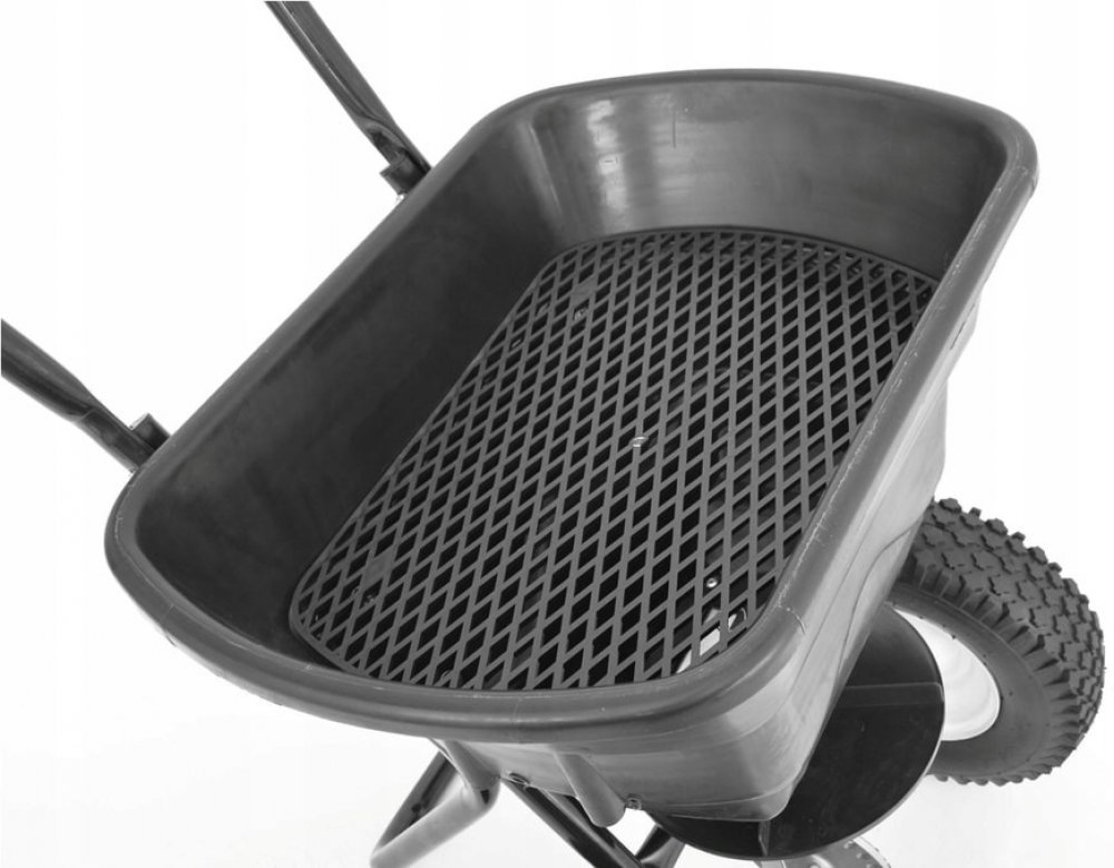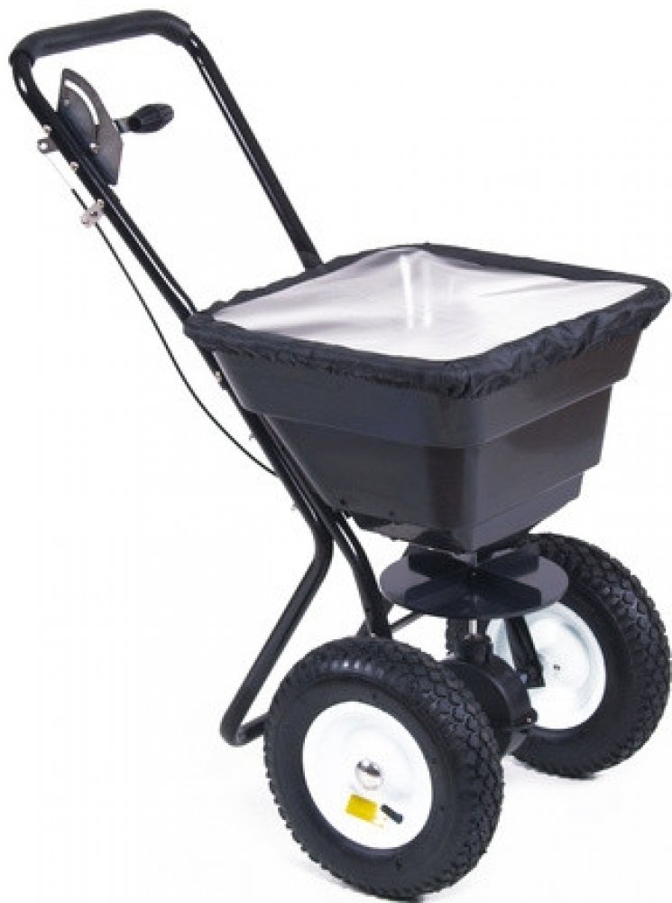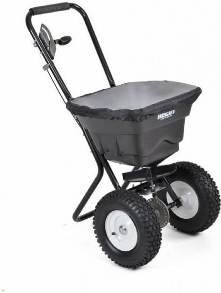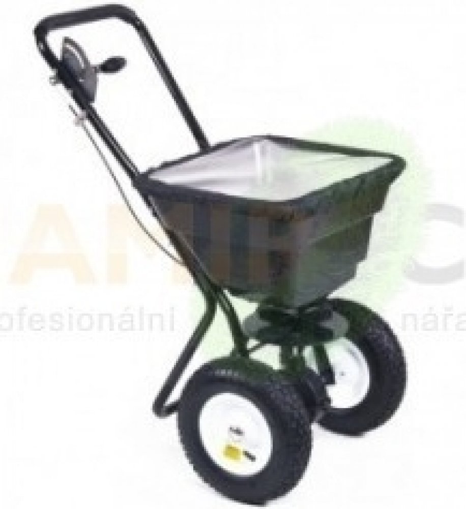 Ruční posypový vozík s regulací posypu. Obsah 29 l. Určeno k aplikaci hnojiv, osiva a v zimním období i soli. Regulace posypu.