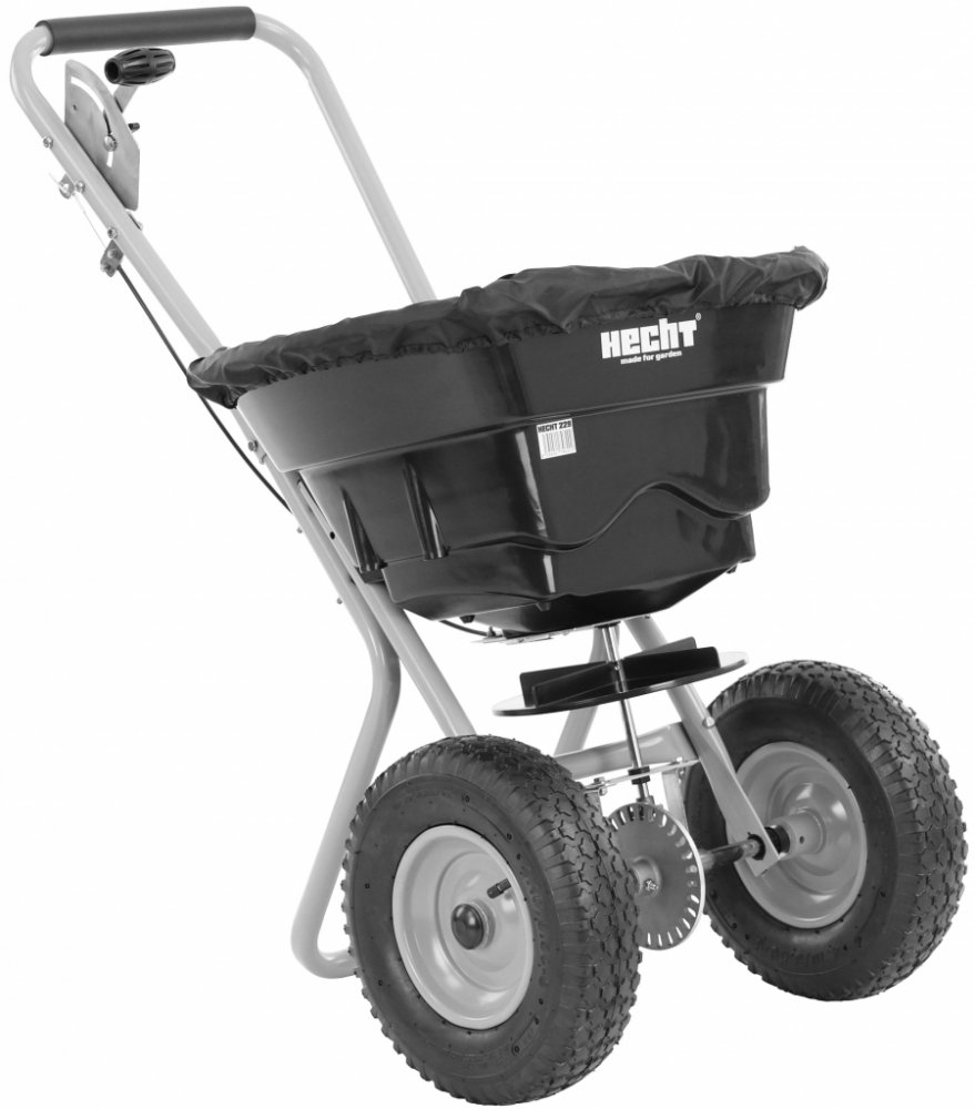 Hecht 229 je kvalitní ruční posypový vozík s možností regulace posypu. Je určen k aplikaci osiv, hnojiv a v zimních měsících lze použít i k aplikaci posypové soli. Množství je velice snadno nastavitelné pákou přímo na madle. Pohon systému je prováděn převodem z pojezdových kol. Díky tomu je zajištěn relativně rovnoměrný posyp povrchu - objem sypaného materiálu je přímo úměrný ujeté trase. Do zásobníku se vejde až 29 l osiva, hnojiva nebo soli a je opatřen sítem, které zabraňuje ucpání posypového mechanismu. Součástí je i krycí plachta zásobníku.