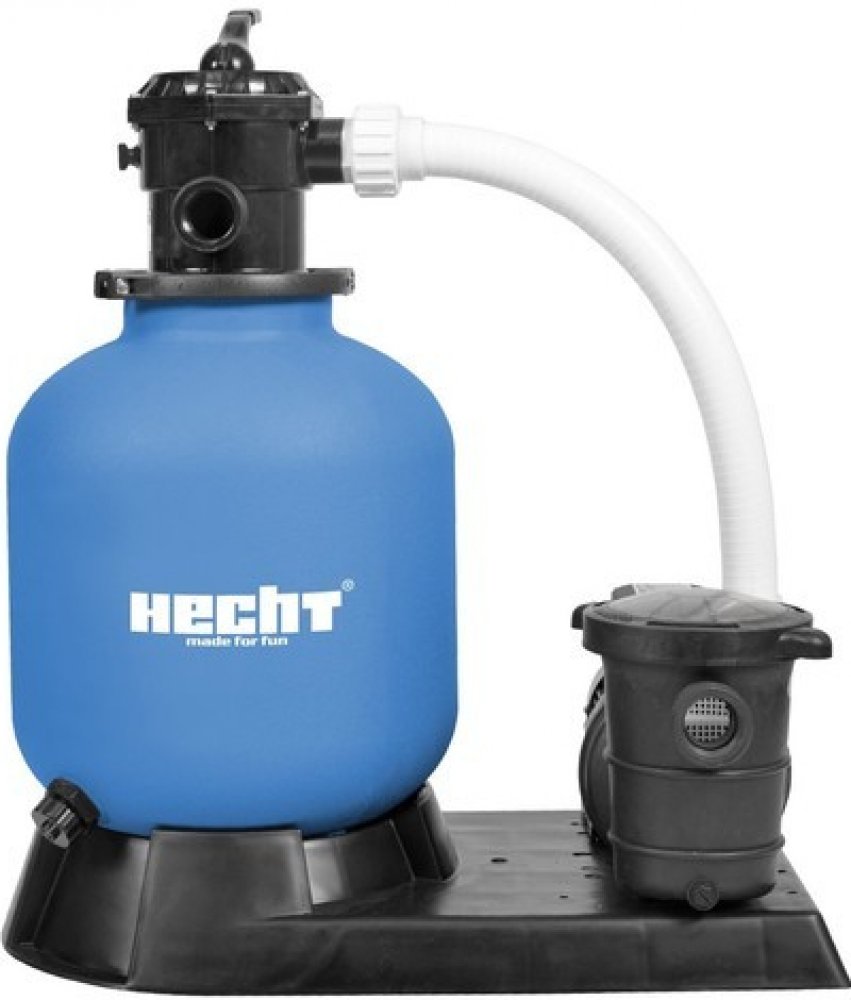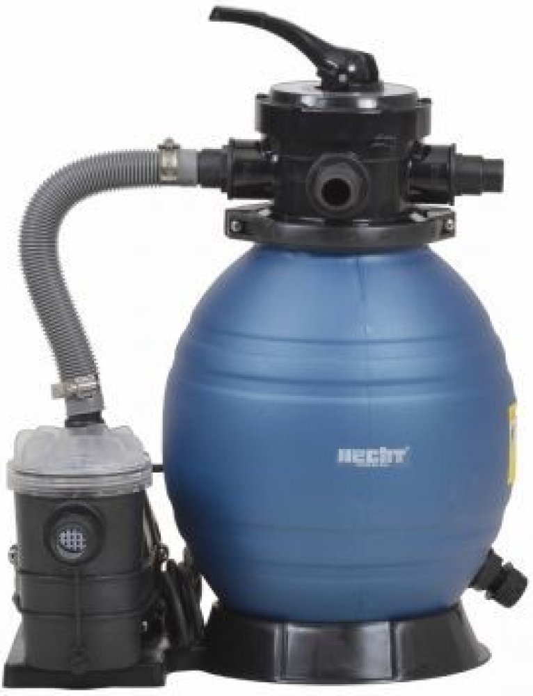 Filtrace je vybavena čtyřcestným ventilem, který usnadní údržbu. Po většinu času je ventil nastaven na režim filtrování. V tomto režimu prochází voda z bazénu přes filtrační písek, který zachytává nečistoty a pročištěná voda je vracena zpět do bazénu. Přepnutím ventilu na zpětný proplach voda ve filtraci proudí v opačném směru. Písek je zvířen, uvolní se usazené nečistoty a takto znečistěná voda je vypouštěna výpustí do kanalizace. V režimu výplachu pak voda proutí opět normálním směrem, opět je však vypouštěna do kanalizace. Tento režim slouží k opětovnému usazení písku v nádobě, kdy se mohou uvolnit další usazené nečistoty a takto jsou odplaveny mimo bazén. Posledním režimem ventilu je zazimování. Tato poloha je použita, pokud je bazén mimo provoz. Při jakékoli manipulaci s ventilem musí být čerpadlo vypnuto, jinak může dojít k poškození ventilu! Filtrace je vybavena manometrem, který sleduje tlak v systému. Díky tomu máte vždy přehled o správné funkci filtrace a nutnosti propláchnutí. Pokud je písková náplň příliš znečištěna, voda nemůže dostatečně rychle proudit a v nádobě začne stoupat tlak. Pokud tlak stoupne nad předepsanou hodnotu, je nutné písek pomocí čtyřcestného ventilu propláchnout. Součástí filtrace je předfiltr hrubých nečistot. Tento předfiltr je umístěn na vstupu před čerpadlem a brání jeho poškození nasátím předmětů, které by mohly ucpat, nebo poškodit lopatky turbíny čerpadla. Filtrace je opatřena přírubami pro hadice o průměru 32 a 38 mm. Hadice nejsou součástí dodávky, průměr hadice je nutné volit podle průchodek a přírub na bazénu a skimmeru.