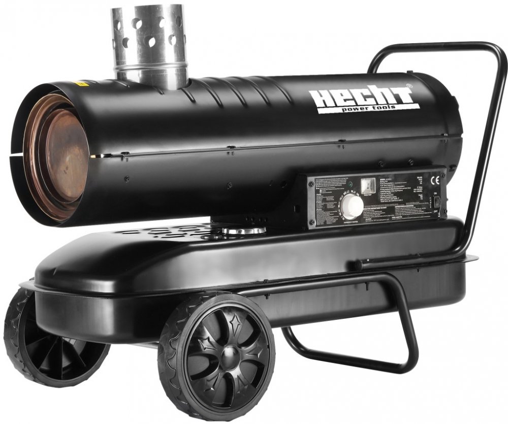 Horkovzdušné turbíny bývají běžně konstruovány tak, že zplodiny ze spalování jsou vyfukovány společně s horkým vzduchem do vytápěných prostor. HECHT 3040 je však turbína s vnitřním spalováním, zplodiny jsou bezpečn...
