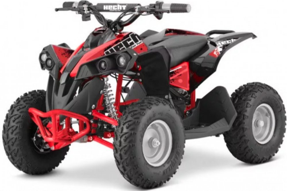 HECHT 51060 je akumulátorová štvorkolka určená pre voľnočasové aktivity. Predné kolesá sú vybavené mechanickými kotúčovými brzdami ovládanými páčkou na riadidle. Možnosť aretácie páčky v stlačenej polohe oceníte predovšetkým pri parkovaní. Kolesá sú na zadnej osi pevne spojené s elektromotorom. Nie je teda použitý reťazový prevod ani prevod kardanovým hriadeľom, čo podstatne zvyšuje životnosť aj spoľahlivosť stroja a odpadá tak bežná údržba spojená s týmito prevodmi. Na zadnej osi je tiež umiestnená mechanická kotúčová brzda. Obe zadné kolesá zaberajú a brzdia súčasne, diferenciál je pri stroji tejto hmotnosti a rozmerov zbytočný. Vďaka tomuto riešeniu štvorkolka ľahko uvezie prívesný vozík, ktorý je možné voliteľne dokúpiť.