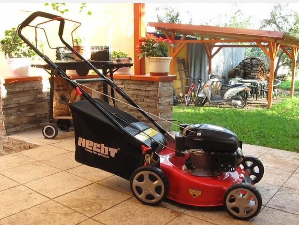Hecht 2000 W 40.6 cm 3 km/h ocelové 23.5 kg s pojezdem benzínové rotační 40 l 750 m2 čtyřtaktní 75 mm s látkovým košem
