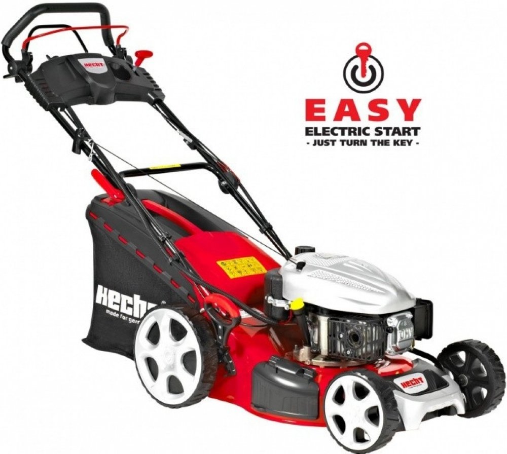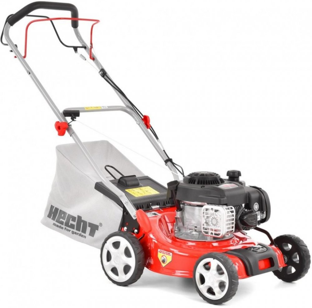 Pro pohon byl použit osvědčený Hecht OHV motor s obsahem 135 cm3 o výkonu 5 HP. Motor tak vyvine dostatek síly jak pro samotné sečení, tak pro pojezd rychlostí cca 3,6 km/h. Stabilní a pevné kovové šasi je opatřeno otvorem se záslepkou pro boční výhoz. Součástí dodávky je i kryt bočního výhozu, který umožní sekat trávu v režimu bočního výhozu. Díky tomu je možné sekat i lehce přerostlou trávu, aniž by se sekačka hltila a obsluha šlapala v posekané trávě.