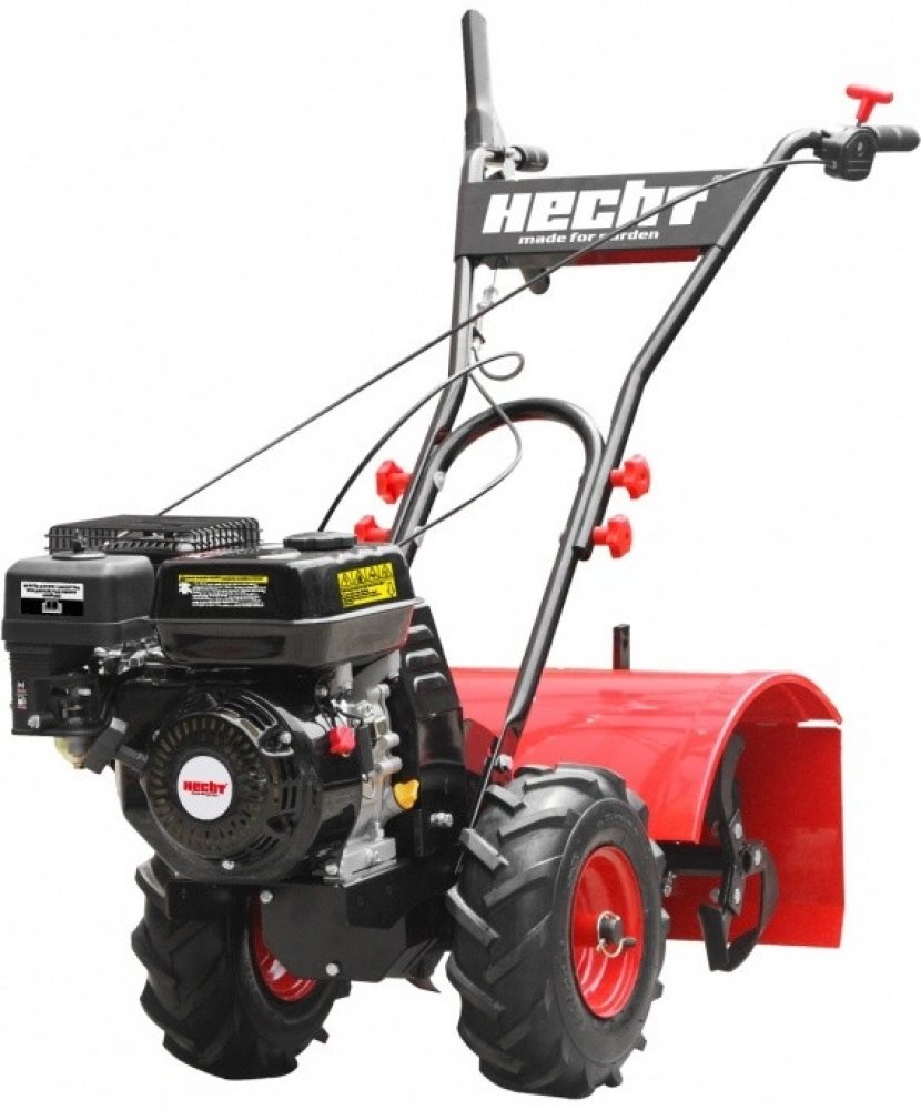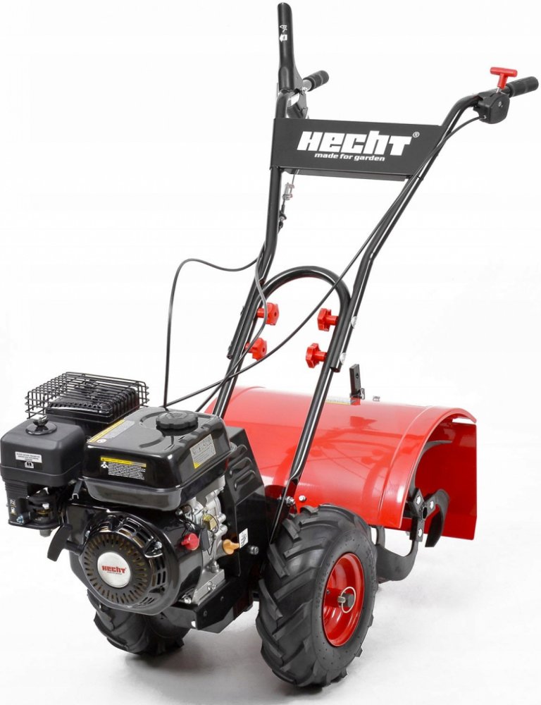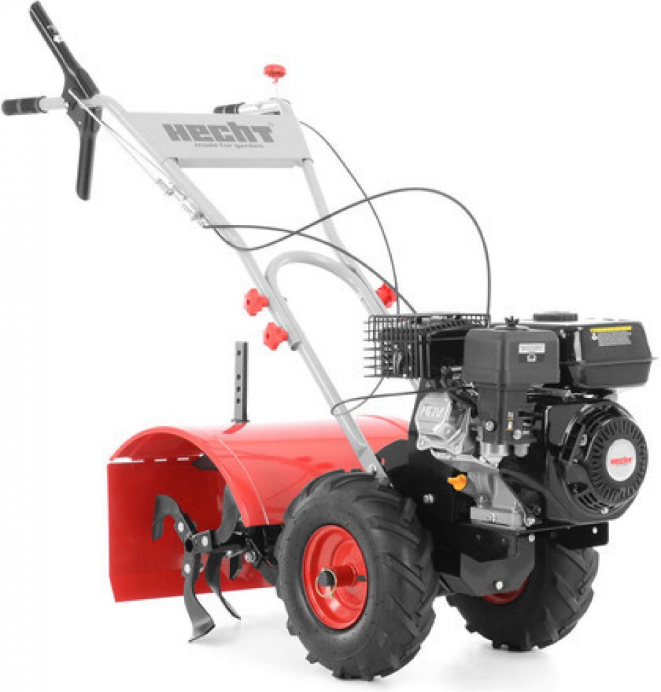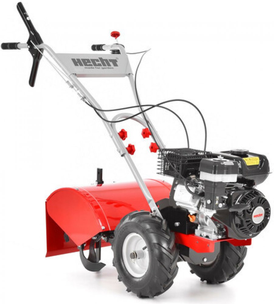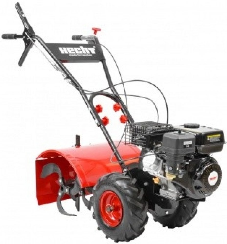 Benzínový kultivátor HECHT 750, poháněný 4taktním motorem HECHT OHV se zdvihovým objemem 196 cm3 o výkonu 6,5 HP. Kultivátor je opatřen 13“ koly s hrubým dezénem zajišťujícím skvělou trakci i v nezpevněném terénu. Rychlost pojezdu s motorem je až 1,4 km/h, hřídele kol jsou vybaveny čepy, které zároveň slouží jako manuální volnoběžka. Pohon kol je tak možné odpojit, díky tomu je manipulace se strojem s vypnutým motorem snadná, obsluha nemusí překonávat odpor převodů. S motorovým pohonem je možné pojíždět vpřed i vzad, směr pohybu je snadno volitelný stiknutím příslušné páky na pravém řidítku. Startování se provádí pomocí klasického táhla na přední straně motoru.