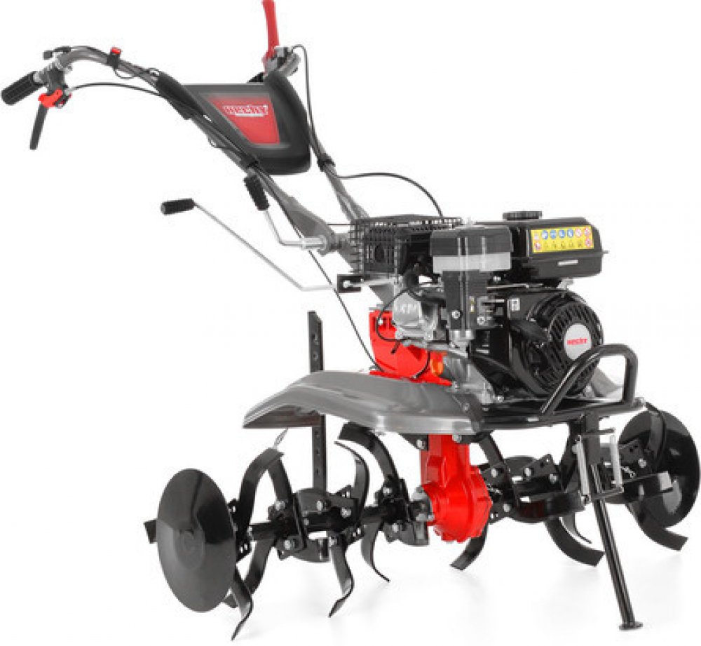 Standardně je dodáván se čtyřmi sadami kultivačních radliček, jejichž pracovní záběr je celkem 110 cm. Stroj je tak vhodný i pro práci ve větších záhonech. Vybaven je dvoustupňovou převodovkou. Je tak možné volit dvě rychlosti vpřed a zpátečku. Startování je prováděno pomocí klasické startovací šňůry. Řídítka jsou výškově nastavitelná. Snadno je tak přizpůsobíte pro pohodlné ovládání stroje při jakékoli práci.