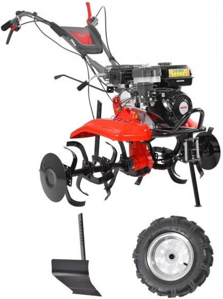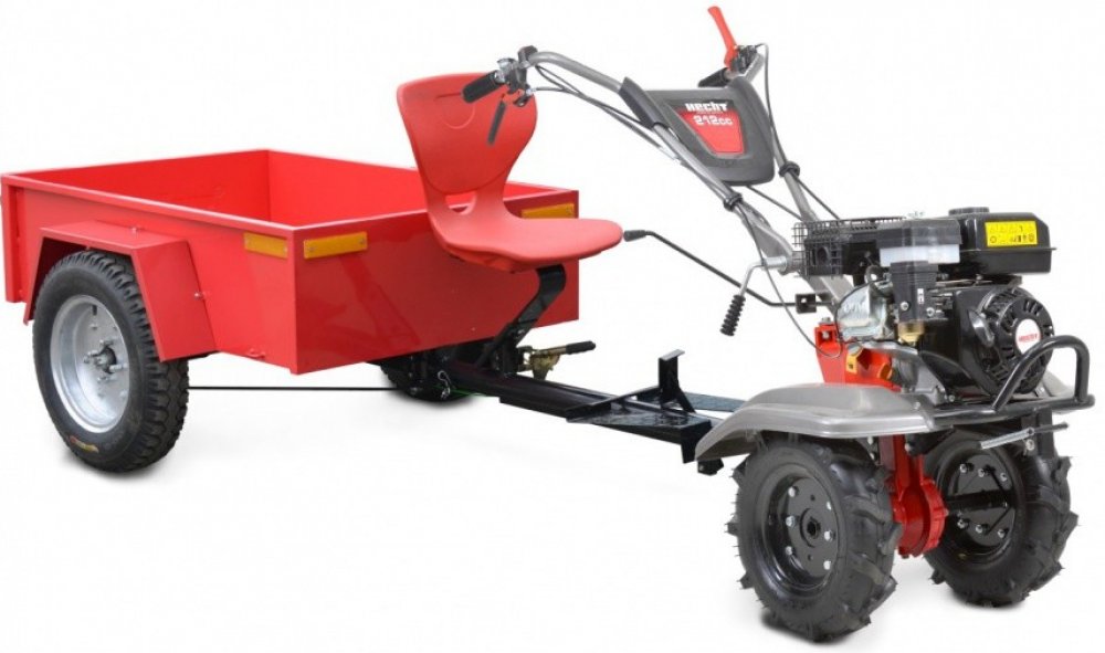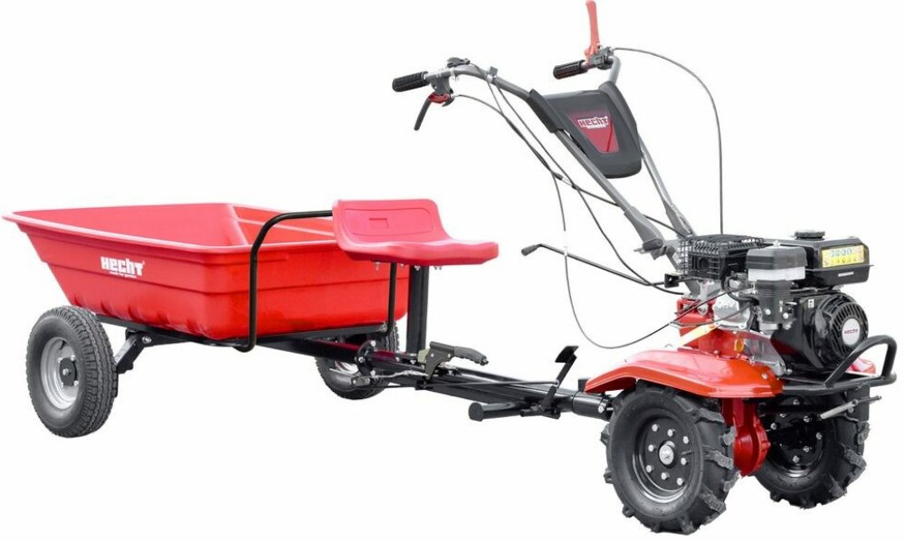 HECHT 7970 ocení každý, kdo hledá stroj pro široké využití po celou sezónu. Poháněn je čtyřdobým motorem HECHT OHV s objemem 212 cm3. Standardně je dodáván se čtyřmi sadami kultivačních radliček, jejichž pracovní záběr je celkem 110 cm. Stroj je tak vhodný i pro práci ve větších záhonech. Vybaven je dvoustupňovou převodovkou. Je tak možné volit dvě rychlosti vpřed a zpátečku. Startování je prováděno pomocí klasické startovací šňůry. Řídítka jsou výškově nastavitelná. Snadno je tak přizpůsobíte pro pohodlné ovládání stroje při jakékoli práci. Součástí setu je sada 8" kol s pneumatikami s hrubým dezénem HECHT 000720, přívěsný vozík HECHT 57100 a oj potřebná k připojení vozíku na kultivátor, HECHT 57101. Kultivátor díky této sadě během několika minut proměníte v jednoosý traktor. Stroj však není určen k provozu na pozemnách komunikacích. Parametry Jmenovitý výkon SAE J1940 (kW) 3,6 Motor HECHT 4-taktní Objem motoru (cm3) 212 Typ pohonu Spalovací benzínový motor Hmotnost (kg) 193 Max. prac.otáčky motoru (ot/min) 3600 Objem motorového oleje (litry) 0,6 Objem palivové nádrže (litry) 3,6 Objem převod. oleje (litry) 1,7 Otáčky prac. nástroje (ot/min) 130 Počet nožů 4 páry Počet rychlostí vpřed 2 Počet rychlostí vzad 1 Pracovní záběr (cm) 110 Točivý moment (Nm) 12