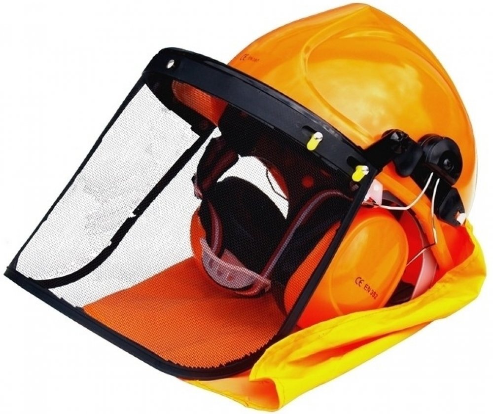 Ochranná helma s chrániči sluchu a štítem. Bezpečnostní přilba s integrovanou ochranou obličeje a sluchu. Rychloupínání, CE. Ochrana očí a sluchu vhodná pro práci s pilou. Kvalitní síťovina chrání zrak a obličej před odletujícími pilinami. Zároveň se síťovina v chladném počasí nerosí a proto vždy zajistí perfektní průhled při nebezpečné práci s pilou. Nastavitelné chrániče sluchu chrání před nadměnrným hlukem výkonného motoru pily. Přilba ochrání hlavu před úrazem, od padajících větví apod.
