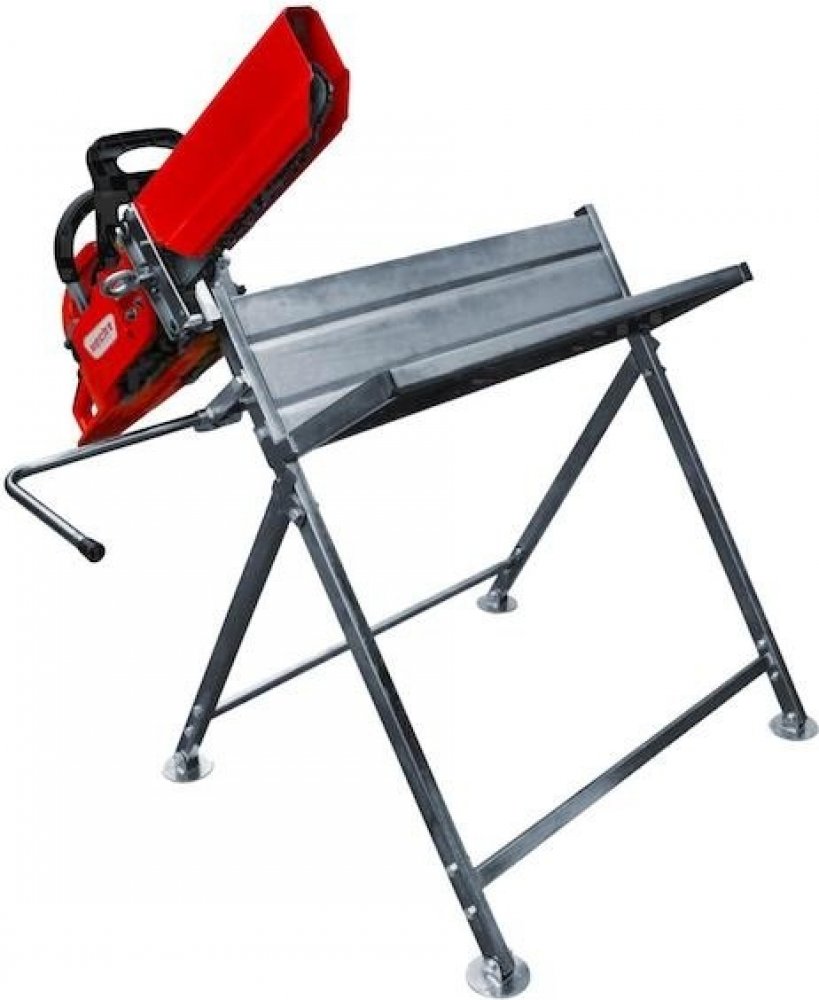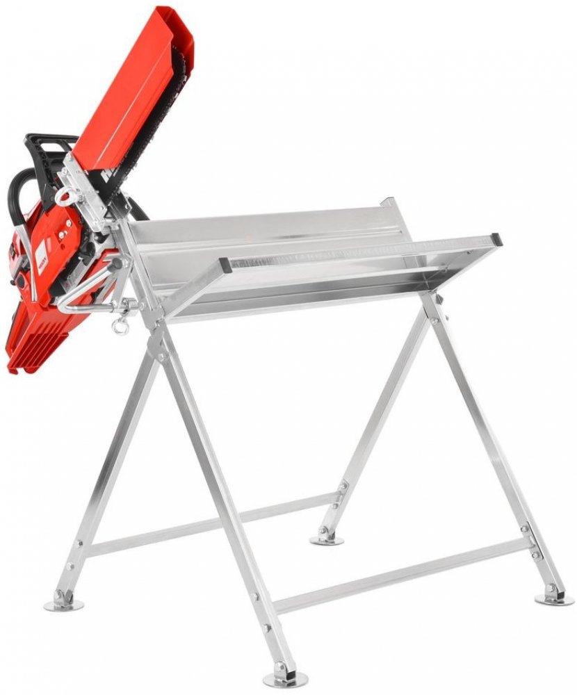 Stojan pro řezání řetězovou pilou. Pilu jednoduše upnete do stojanu a můžete bezpečně řezat, aniž byste museli držet těžkou pilu v rukách. Lišta je v klidovém stavu schována v krytu, čímž se podstatně snižuje riziko úrazu. Vhodné pro všechny typy řetězových pil s hmotností do 7 kg a délkou lišty do 45 cm.