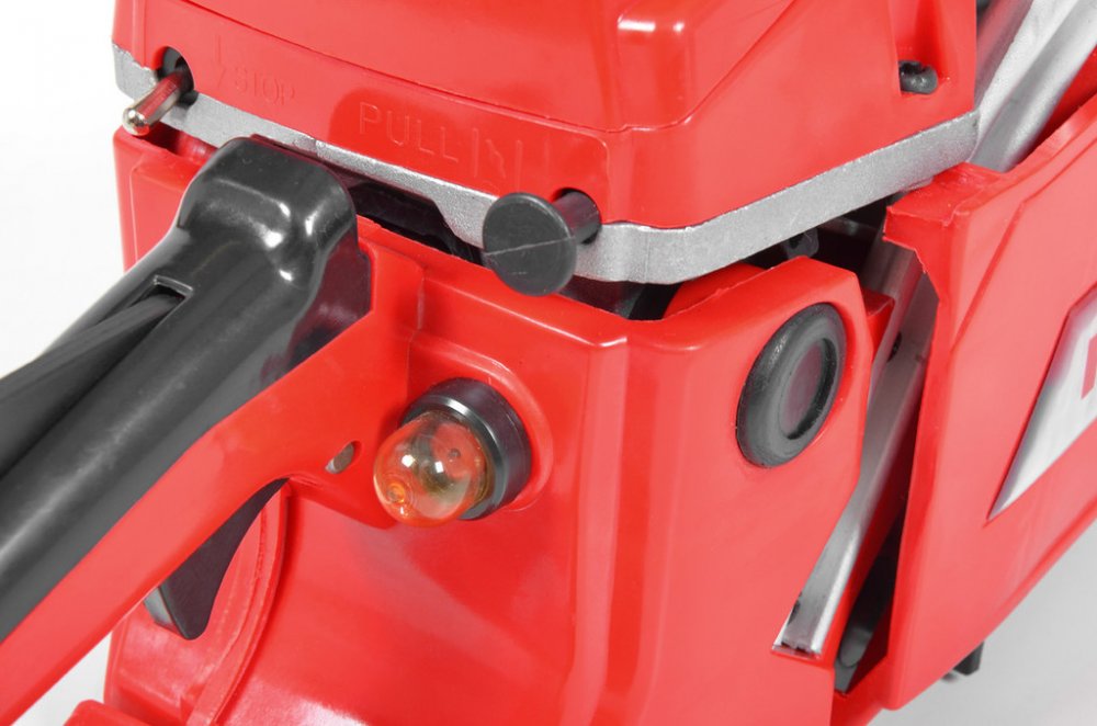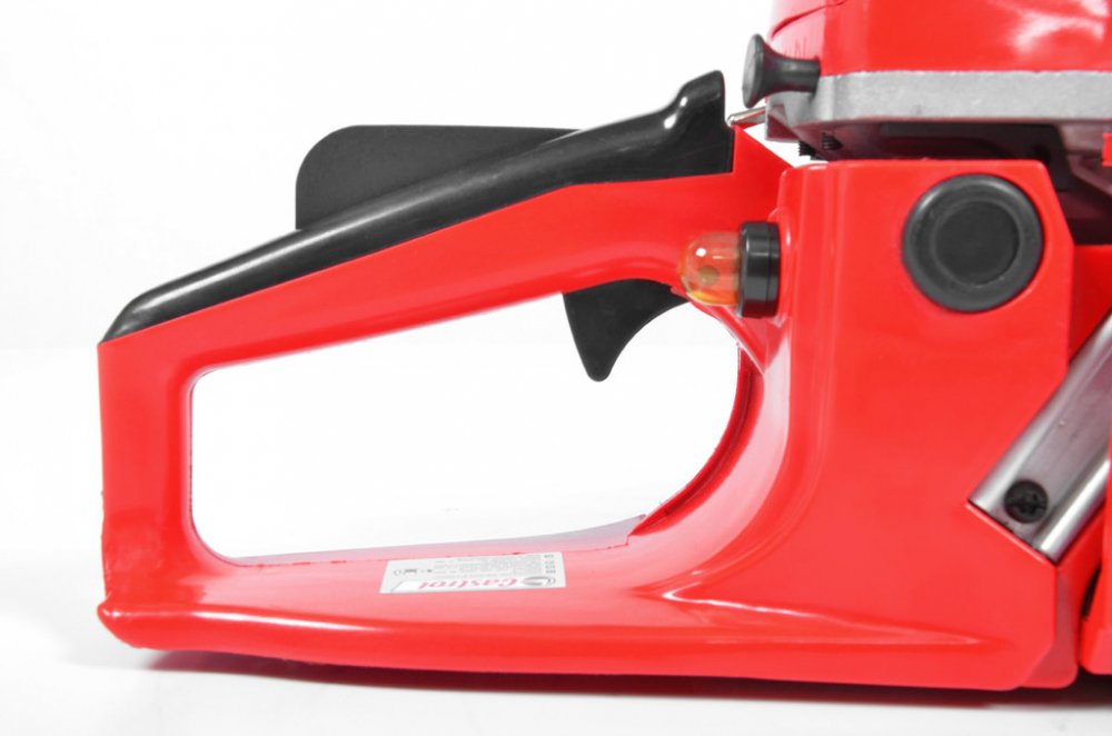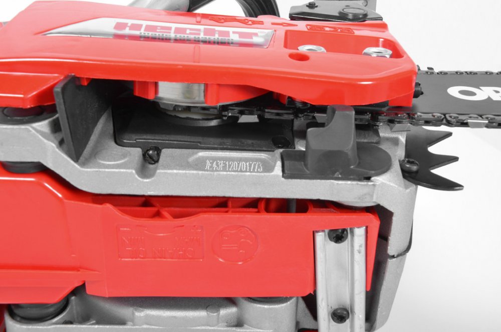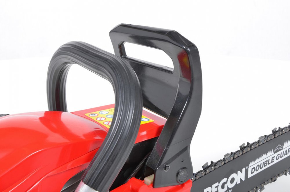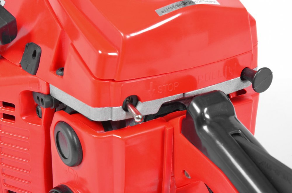 Samozřejmostí je bezpečnostní brzda pro ochranu obsluhy a kovová zubová opěrka pro komfortní řezání. Kvalitní pogumovaná madla zajišťují pevný úchop a pohodlí při práci zvyšují velké gumové silentbloky, které účinně tlumí vibrace. Dobře přístupný vzduchový filtr umožňuje snadné čištění a údržbu.