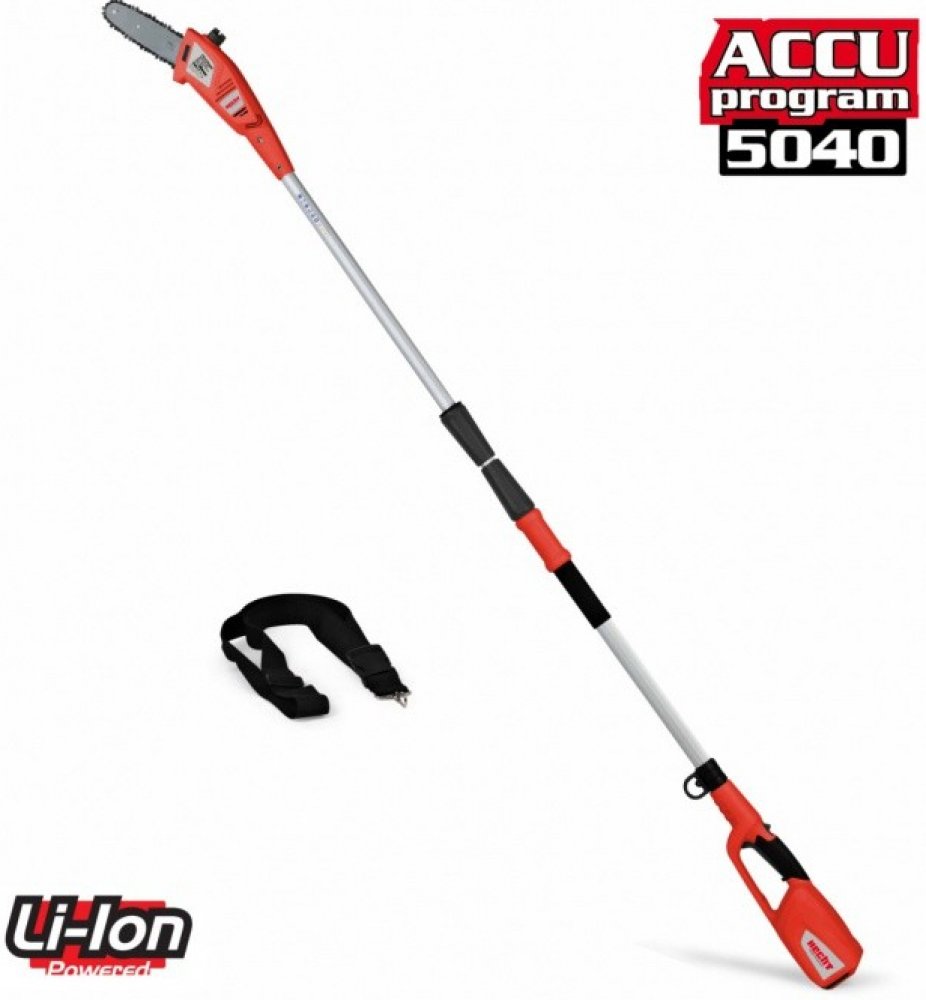 Akumulátorová vyvětvovací pila určená pro prořezávání větví vysoko nad zemí. S teleskopickou rukojetí lze snadno a pohodlně řezat větve ve výšce přesahující až 4 m. Stroj je poháněn elektromotorem napájemým z akumulátoru. Je proto lehký, tichý, neprodukuje žádné emise. Při práci vás neomezují žádné přívodní kabely, se strojem se tak velice dobře manipuluje i v omezených prostorech.