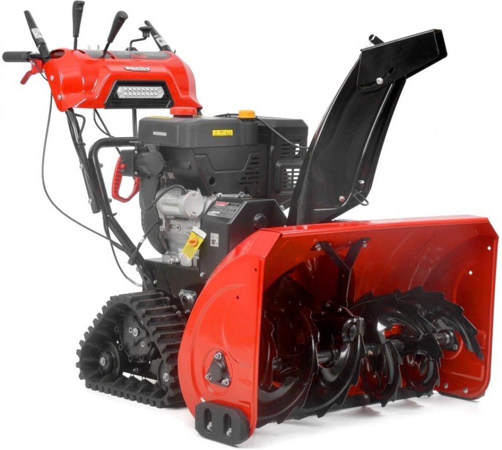 HECHT 9666 je nadstandardně vybavená dvoustupňová sněhová fréza s pojezdem. Jako pohonná jednotka zde slouží benzínový motor HECHT OHV o objemu 252 cm3 s výkonem 7 HP, který je skvělým pracantem v zimních podmínkách. Start motoru lze provádět jak ručně, tak pomocí elektrického startéru pomocí kabelu z klasické 230 V zásuvky. Studený motor tak nastartujete bez námahy a zahřátý motor již snadno nastartujete pomocí táhla. Tím, že není použit pro startování akumulátor, nehrozí ani jeho poškození mrazem. Kvalitní převodovka umožňuje pohon 6 rychlostmi vpřed a 2 vzad. Pro pojezd slouží gumové pásy s dezénem. Nastavitelné kluzáky po stranách bunkru rovněž zajistí pohodlnou a snadnou manévrovatelnost, zároveň jimi lze nastavit bezpečnou výšku pohybu frézy nad povrchem. Základem samotné frézy je pak skutečně robustní kovový bunkr, který ukrývá dva stupně 66 cm široké a 54 cm vysoké frézy. Díky odolnému provedení se tak zuby frézy mohou zakousnout i do zledovatělého sněhu, který je nahnán vysokou rychlostí do komínu a odhozen až do vzdálenosti 15 m. Odhozový komín je plně ovládán z místa obsluhy - směr odhozu lze řídit v rozsahu 190° kličkou pod hlavním madlem, výška a délka odhozu pak páčkou přímo na hlavním ovládacím panelu řídítek. Další prvkem na hlavním panelu je pak řadicí páka. Během práce tak máte snadno dostupné všechny ovládací prvky přímo z prostoru obsluhy. Vyhřívané rukojeti pak dopřejí teplo Vašim rukám. Díky integrovanému světlometu je práce pohodlná i v časných ranních nebo pozdních odpoledních a nočních hodinách. S touto frézou Vás už nikdy nemůže sněhová nadílka zaskočit.