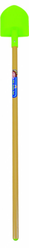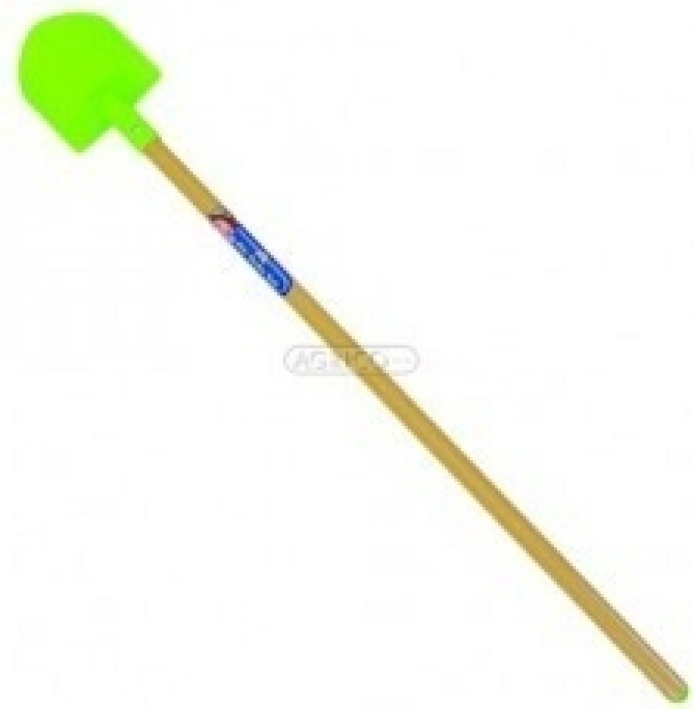 Dětský rýč z pevného plastu se zelenou čepelí a násadou v barvě přírodního dřeva. Hmotnost 0,18 kg.