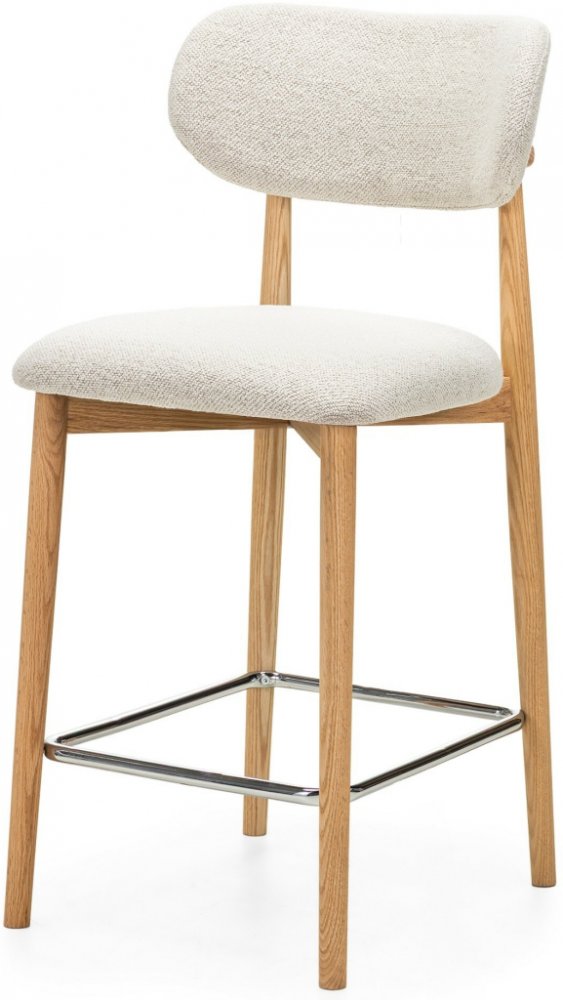 Neméně důležitou součástí je chromovaná opěrka na nohy, která dodává kousku moderní lesk a zvyšuje pohodlí při sezení. Lehce šikmá konstrukce a vyvážené proporce zajišťují, že židle je nejen vizuálně přitažlivá, ale i snadno přemístitelná, pokud ji chcete přisunout nebo odsunout od baru či ostrůvku.