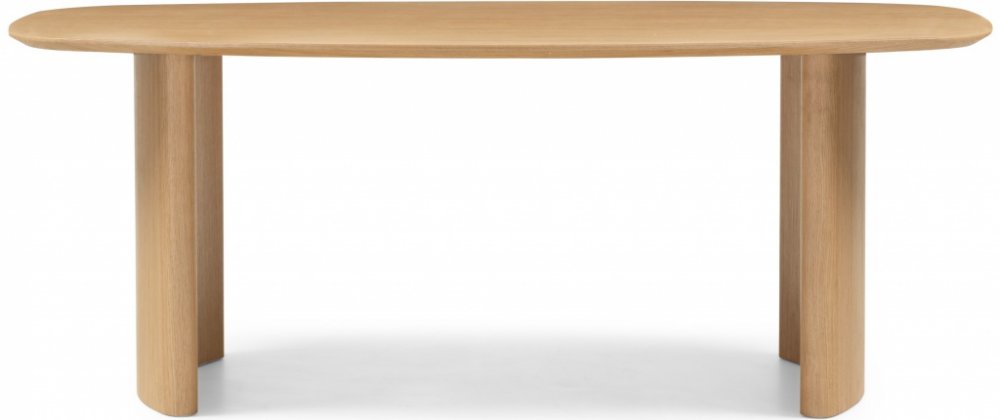 Oválný tvar stolu působí přirozeně a elegantně zároveň. Díky jemně zaobleným hranám a pevným nohám, které zaujmou svým originálním tvarem, působí celý kus lehce, ale zároveň stabilně a sebevědomě. Dvě robustní podnože ve tvaru oblouku přitahují pohled a zároveň zajišťují výbornou oporu i při plném obsazení stolu.