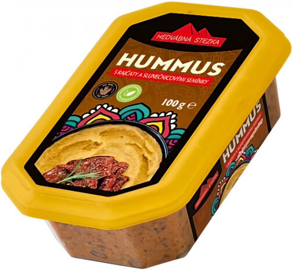 -- Hummus je pokrm z velmi vydatné luštěniny cizrny - římského hrachu. Dochucený je výraznými sušenými rajčaty a slunečnicovými semínky.
