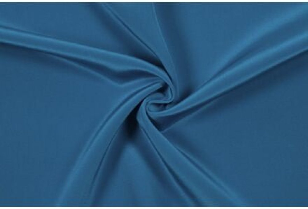Hedvábný krepdešín je jedna z nejoblíbenějších hedvábných látek. Je to lehký materiál s téměř univerzálním využitím: jako šatovka, na halenky, rozevláté sukně, večerní a svatební šaty, luxusní spodní a noční prádlo nebo šály a šátky. Krepdešín je vzdušný, hladký a příjemný na nošení, nejvíc je ale známý svou výjimečnou splývavostí a typickou jemně zrnitou strukturou. Je neprůhledný, ale světlé barvy mírně prosvítají. Tento krepdešín v tyrkysové barvě zvlášť vynikne při použití šikmého střihu, na kolových sukních, zavinovacích šatech, krásný je také v kombinaci s matným a průsvitným žoržetem.