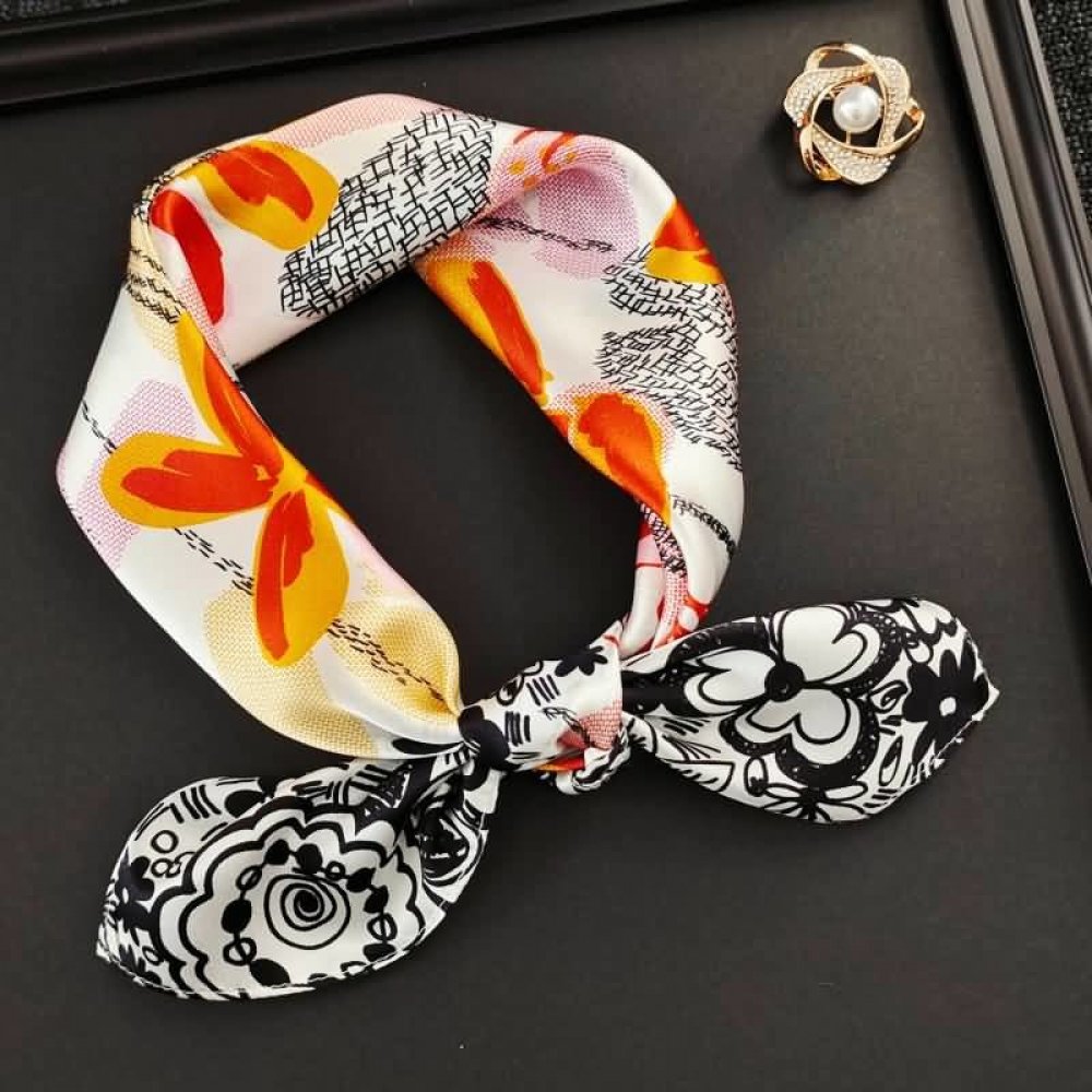 hedvábný šátek černo-bílý s barevnými květy v dárkovém balení
