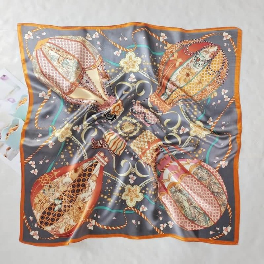hedvábný šátek šedý se zlatou v dárkovém balení