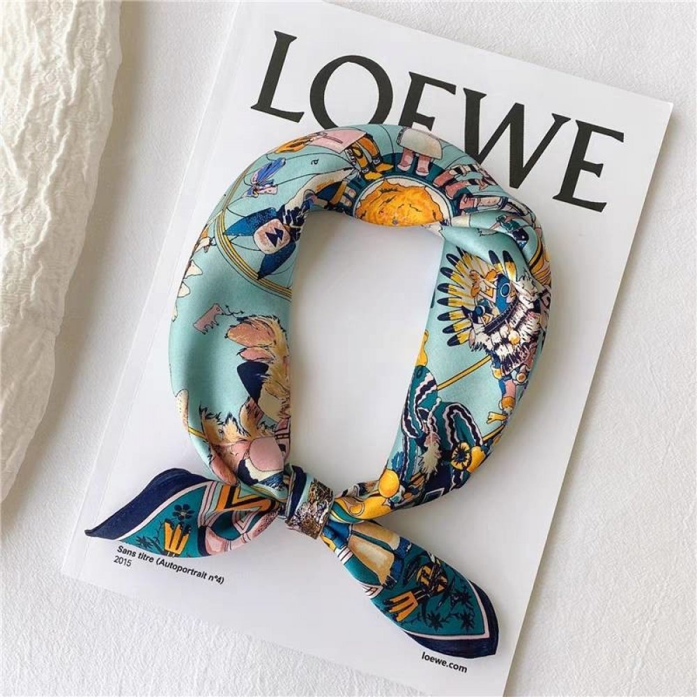 Rozměry hedvábného šátku jsou 53 cm x 53 cm. Šátky jsou vyráběny ručně a tak se rozměr může mírně lišit